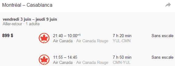 Alors que le même vol vous coûterait 899$ en date d’aujourd’hui en classe économique.