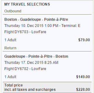 Je viens de faire une simulation pour rejoindre la Guadeloupe depuis Montréal, une destination inabordable habituellement depuis le Canada.