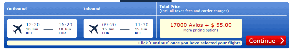 Pour seulement 55$ et 17 000 avios vous pourriez faire l’aller-retour entre l’Islande et Londres. Il faudra toutefois « jouer » avec le calendrier des disponibilités et bien faire attention à vos jours de départ de Montréal / Toronto et d’arrivée en Islande (le lendemain).