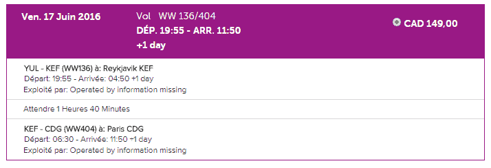 Wow air annonce des prix à partir de 149$ pour des correspondances vers l’Europe. Vérifions donc pour Paris.
