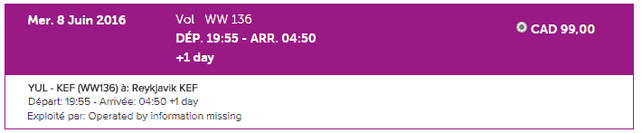 Ex: Si vous partez de Montréal le 9 juin, vous arriverez en Islande le 10 juin. Vous devrez donc chercher des primes pour le 10 juin!