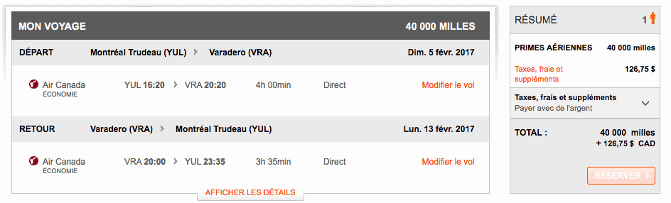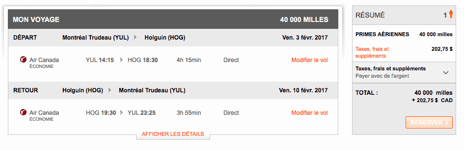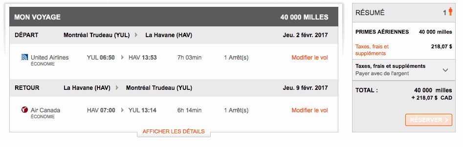 Niveau tarification, il faut 40 000 miles aéroplan pour un aller-retour et entre 100 et 200$ de taxes.