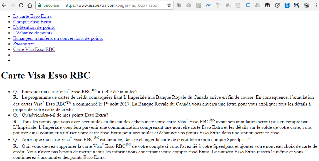 À compter du 1er Août 2017, les cartes de crédit Visa Esso RBC seront progressivement clôturées par RBC (ou converties vers d’autres cartes RBC – le processus n’est pas encore clair).