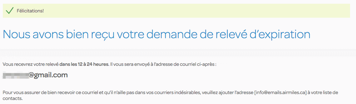 Oui, il faut demander un relevé, ce n’est pas un processus automatique! AIR MILES aurait dû pu indiquer quelque part dans le compte client ces informations liées à l’expiration… ce qui aurait « préparé » les collecteurs depuis 5 ans. Selon nous, il s’agit encore là d’un argument qui s’ajoutera aux nombreux autres dans le cadre du recours collectif intenté contre les gestionnaires du programme de récompenses AIR MILES.