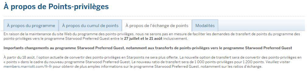 Et du 25 juillet (19:00) au 26 juillet (09:00), il sera impossible d’accéder aux transferts de points depuis points-privilèges.