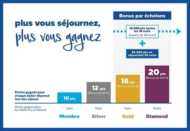 Hilton Honors avance qu’il s’agit d’une exclusivité: le lancement de bonus par échelon. C’Est avant tout réservé aux voyageurs fréquents: