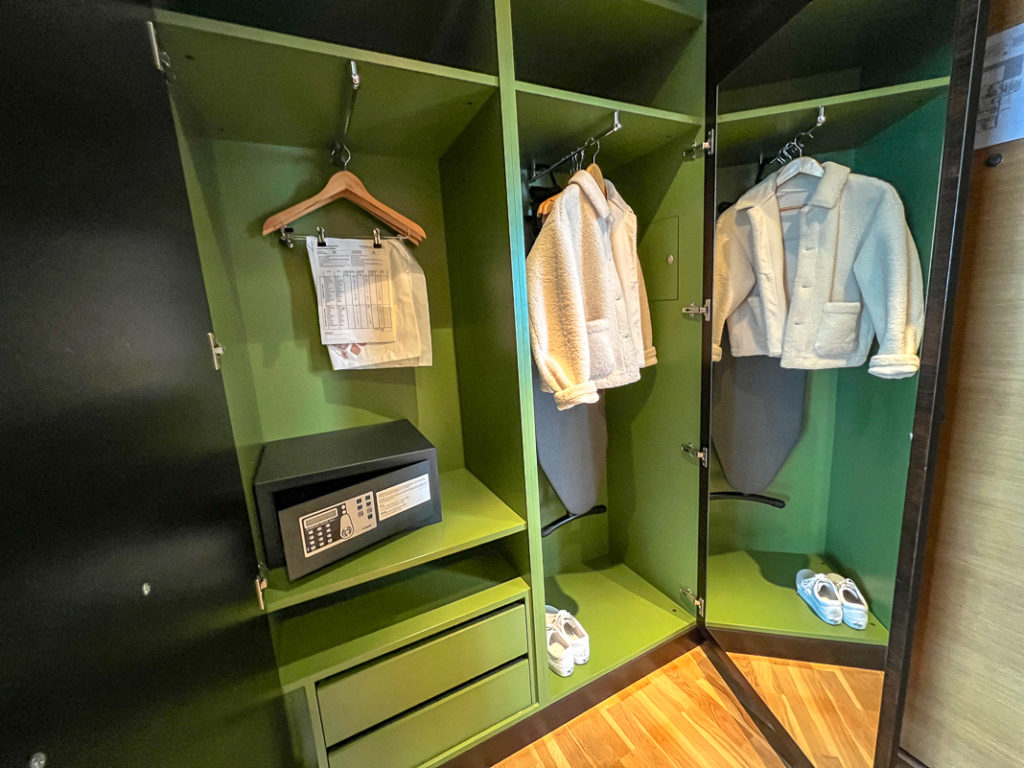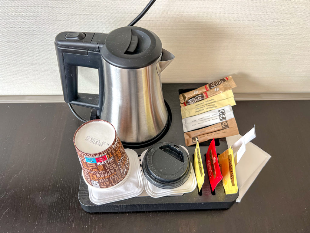 En plus d’être reposante, la chambre était très bien équipée : fer et planche à repasser, coffret de sûreté, garde-robe, miniréfrigérateur ainsi qu’une bouilloire avec thé et café instantané.