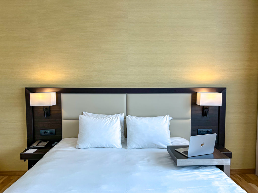 J’ai bien aimé l’espace de bureau, qui était nécessaire pour mes journées de travail. D’ailleurs, mon statut Gold Marriott Bonvoy m’a permis de me connecter gratuitement à la version haute vitesse du Wi-Fi de l’hôtel.