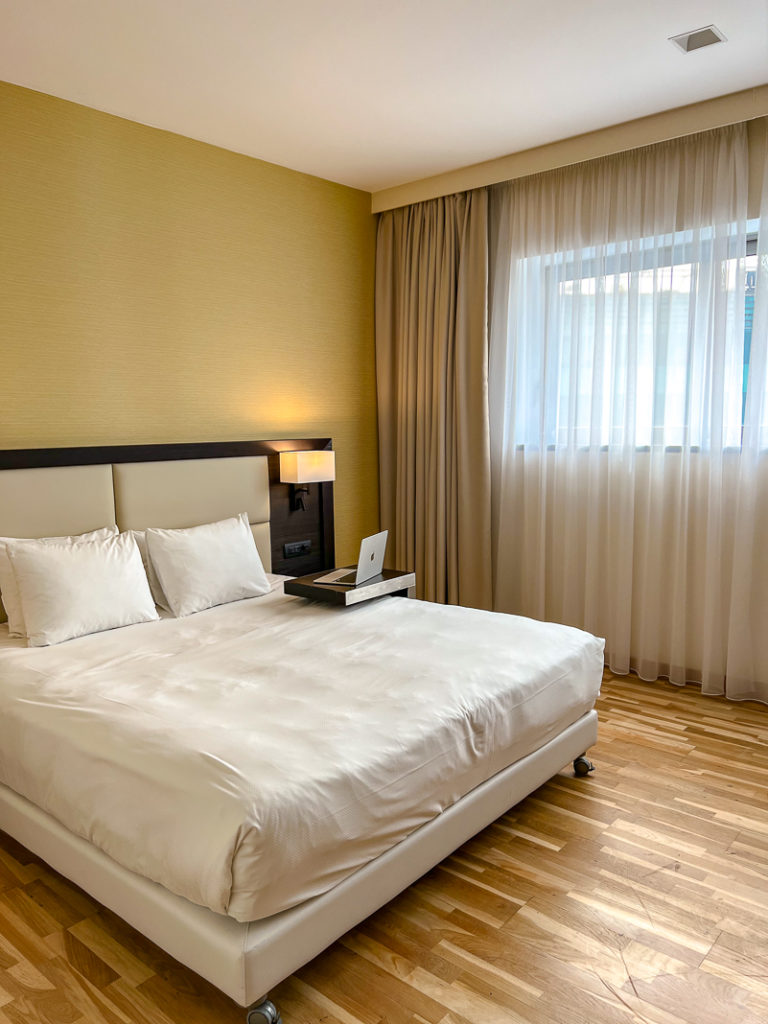 J’ai été surprise de voir à quel point la chambre était spacieuse, puisque ce n’est vraiment pas toujours le cas en Europe. La décoration est fidèle aux hôtels de la marque AC ; contemporaine, minimaliste et aux couleurs terre. Un style simple, épuré et apaisant.