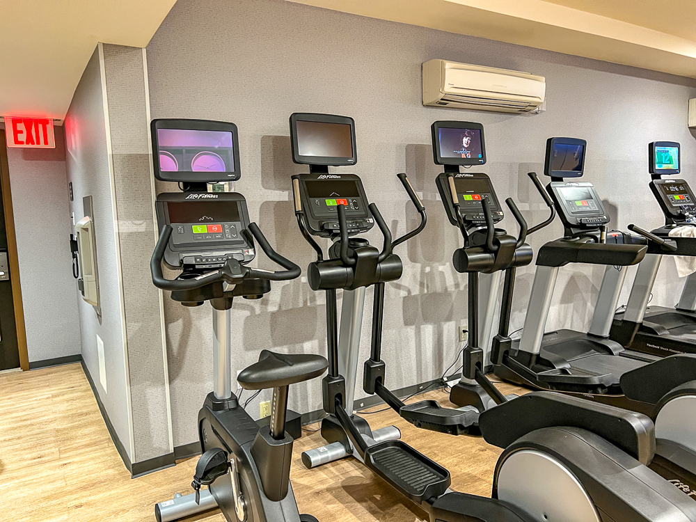 La salle de sport se trouve au sous-sol et requiert la clé de la chambre pour y accéder.