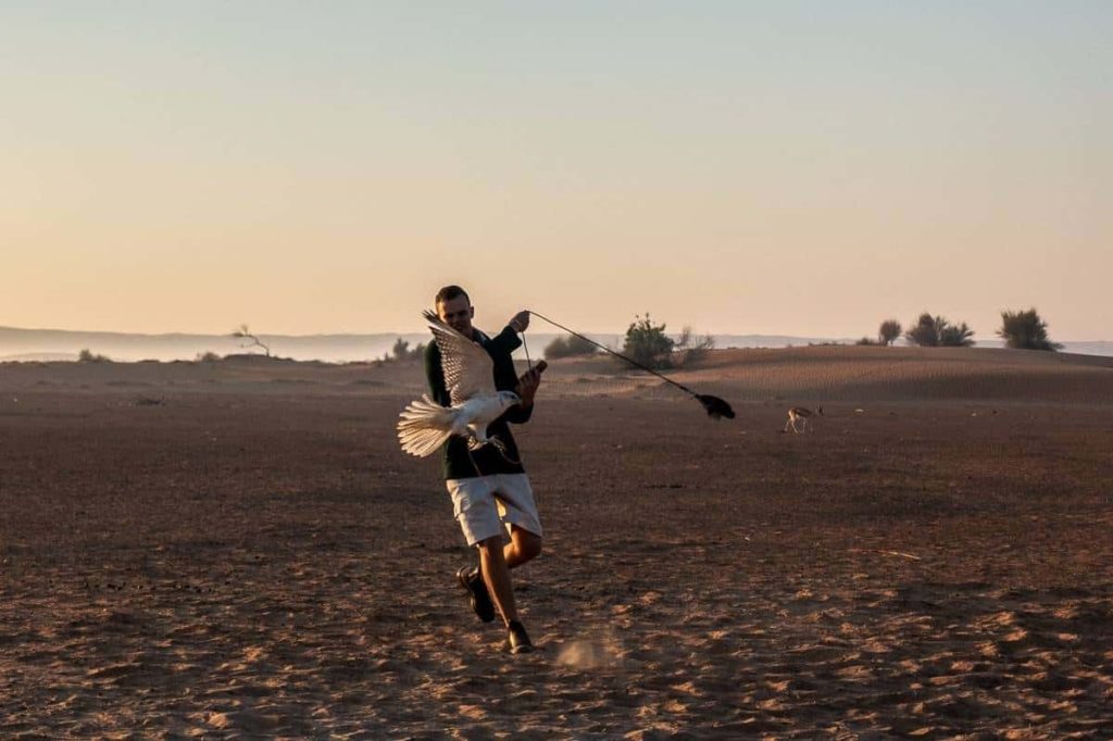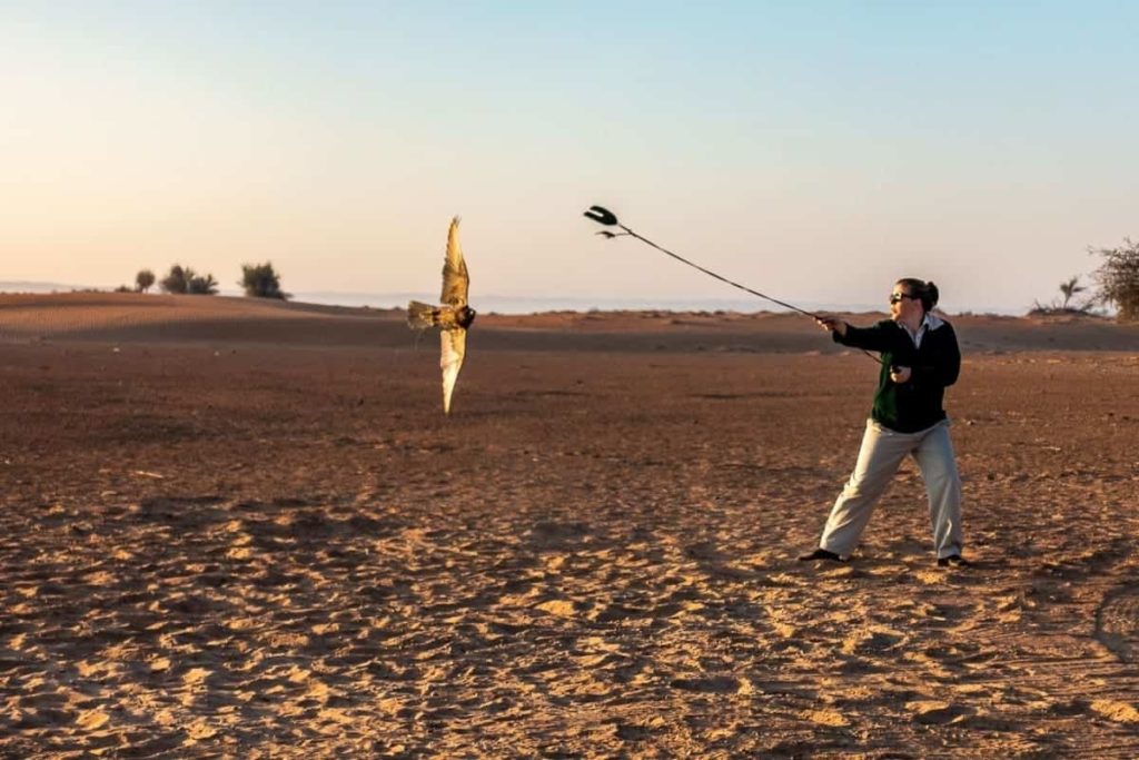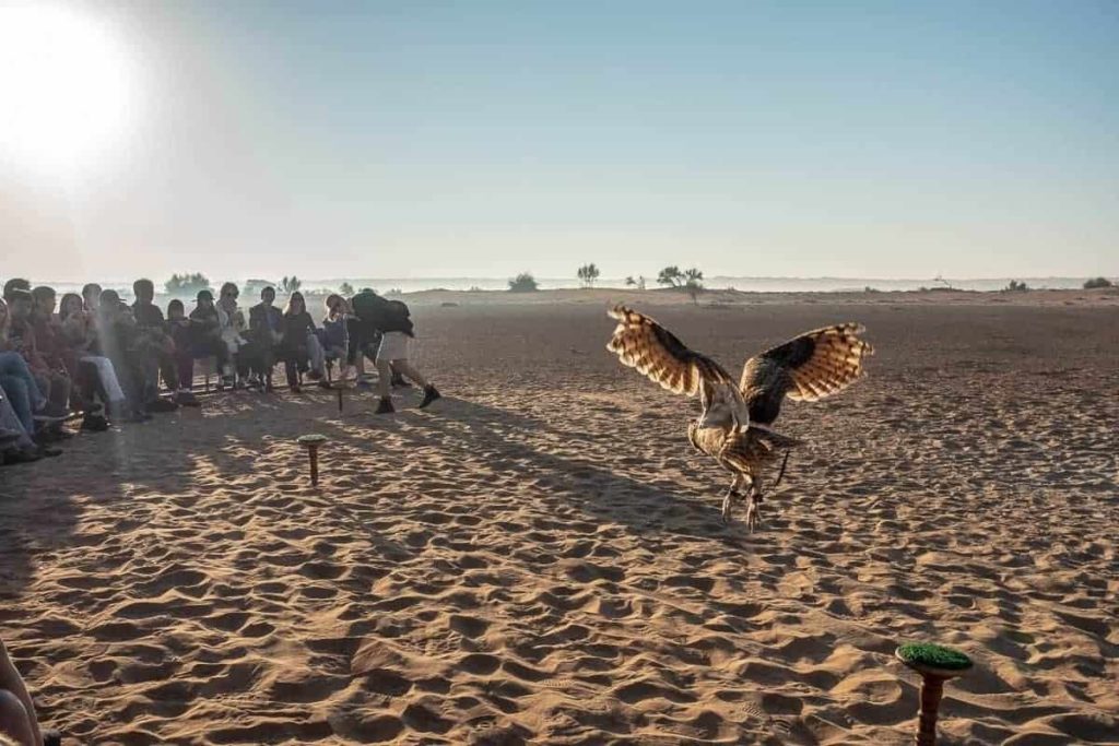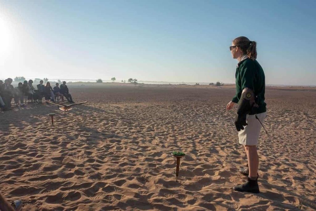 Après une petite marche pour se rendre en face du Al Maha, les animateurs nous parlent de l’histoire des rapaces dans la région, autrefois utilisés pour la chasse, désormais uniquement pour ce qui est désormais considéré comme un sport.
