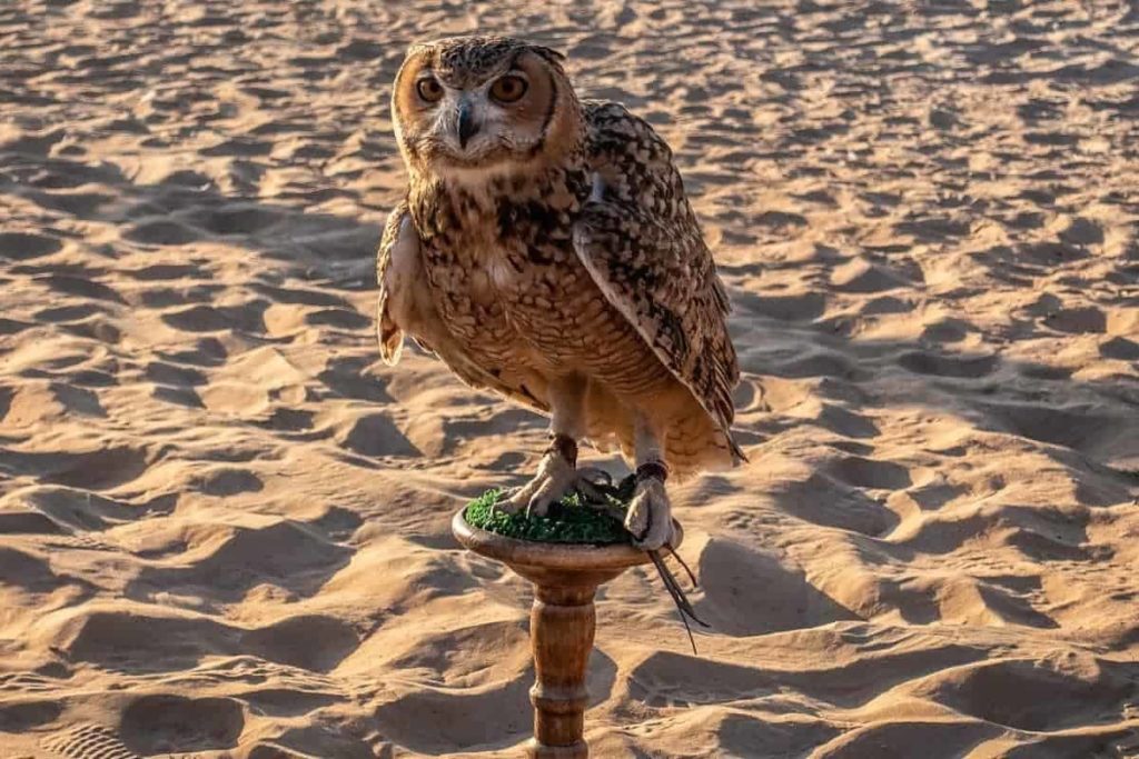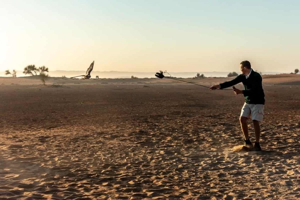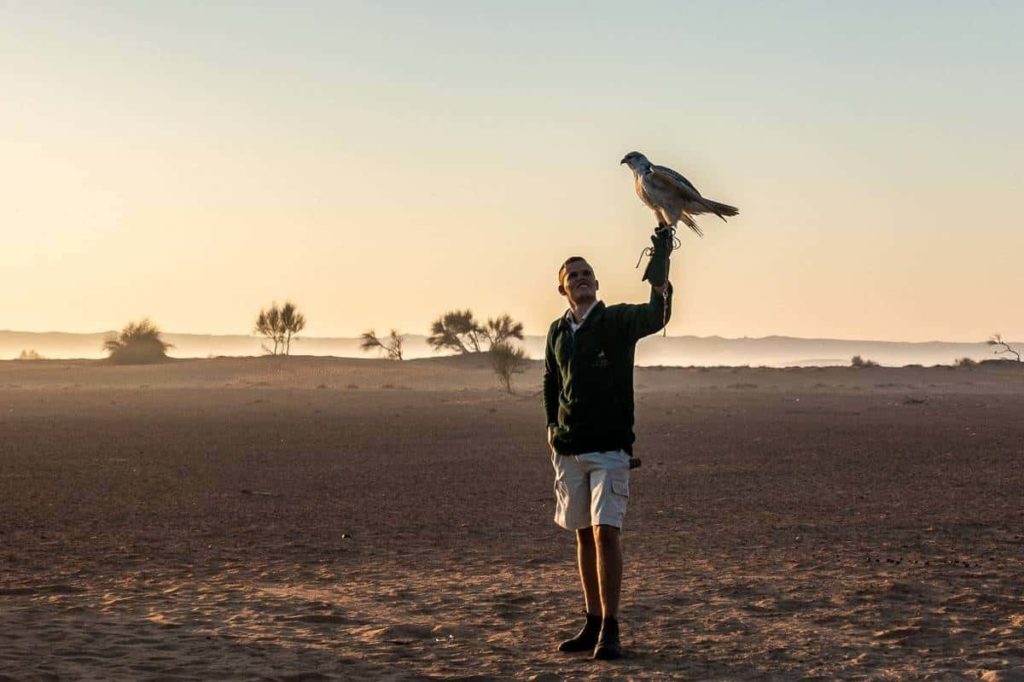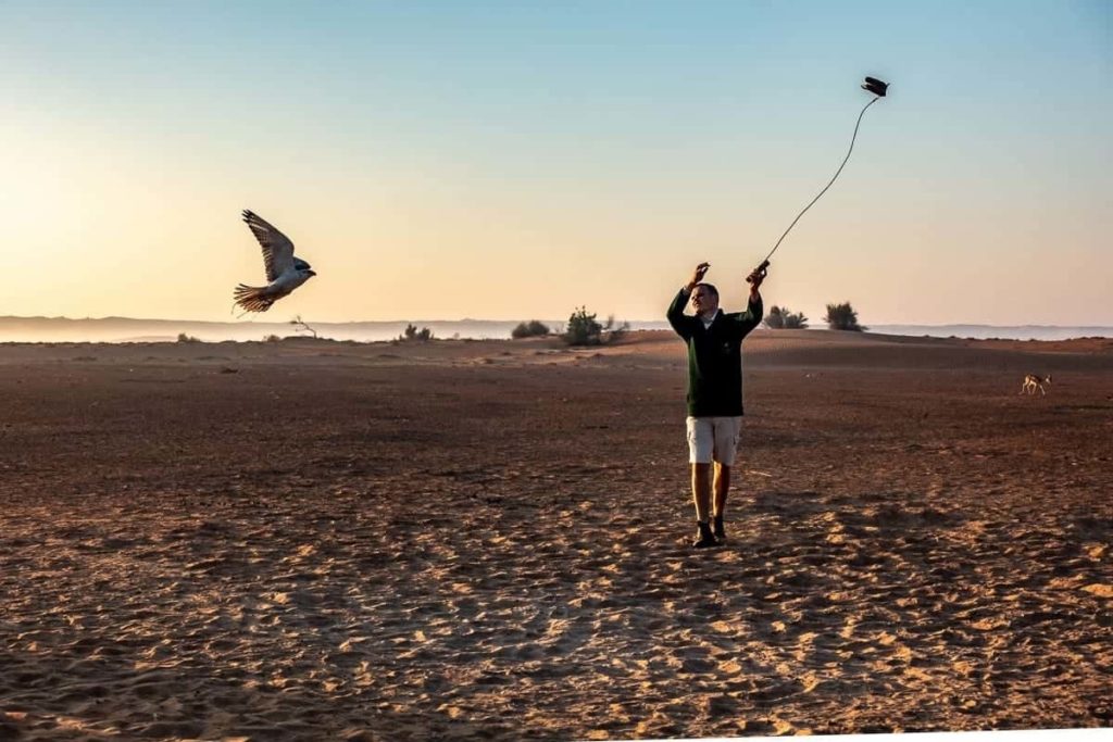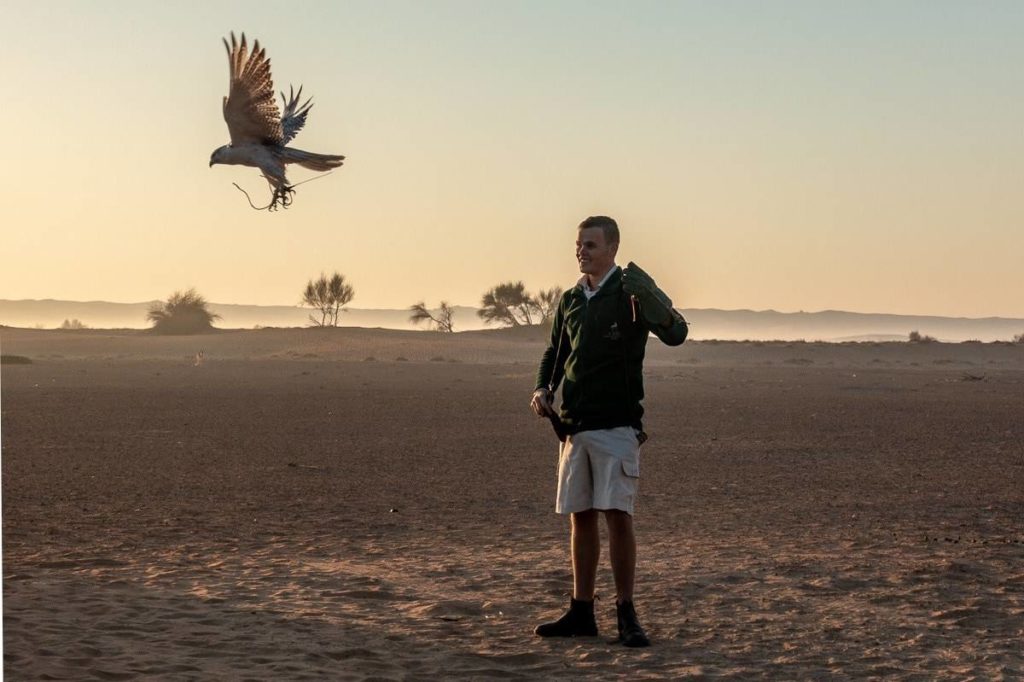 Après une petite marche pour se rendre en face du Al Maha, les animateurs nous parlent de l’histoire des rapaces dans la région, autrefois utilisés pour la chasse, désormais uniquement pour ce qui est désormais considéré comme un sport.