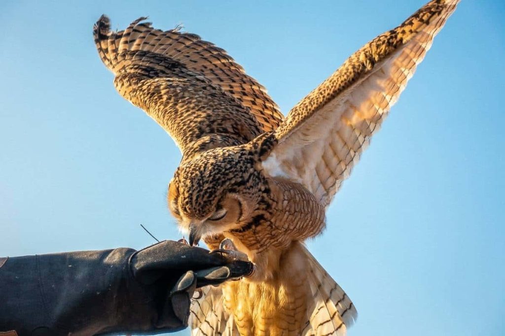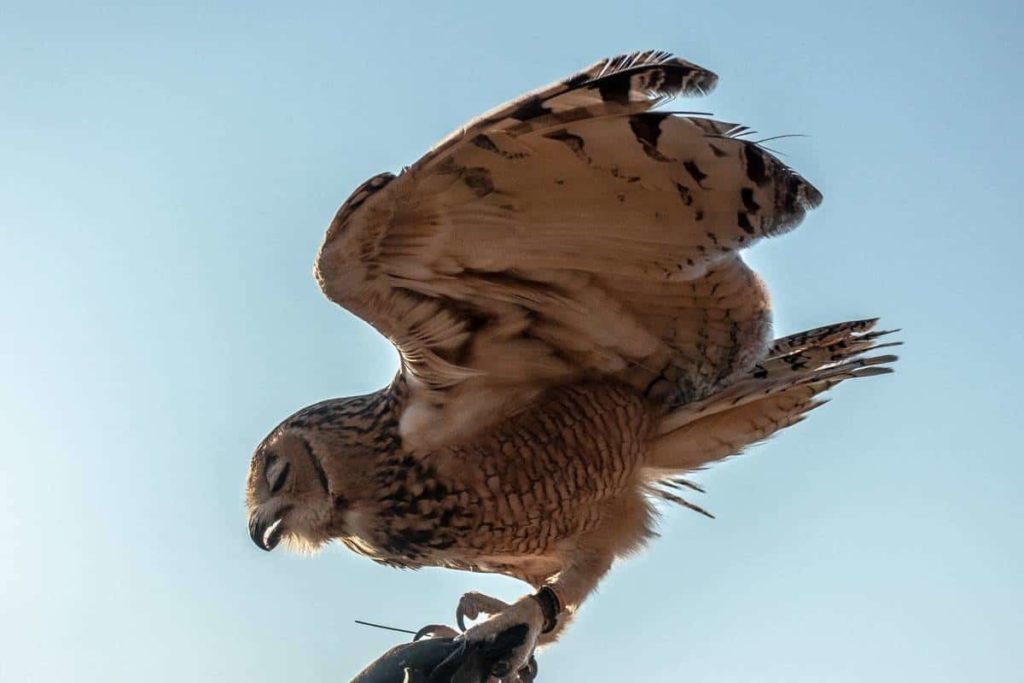 L’activité dure environ 1 heure et vous pourrez assister, en même temps que le lever de soleil, à différents envols impressionnants et captures de proies artificielles par ces oiseaux majestueux.