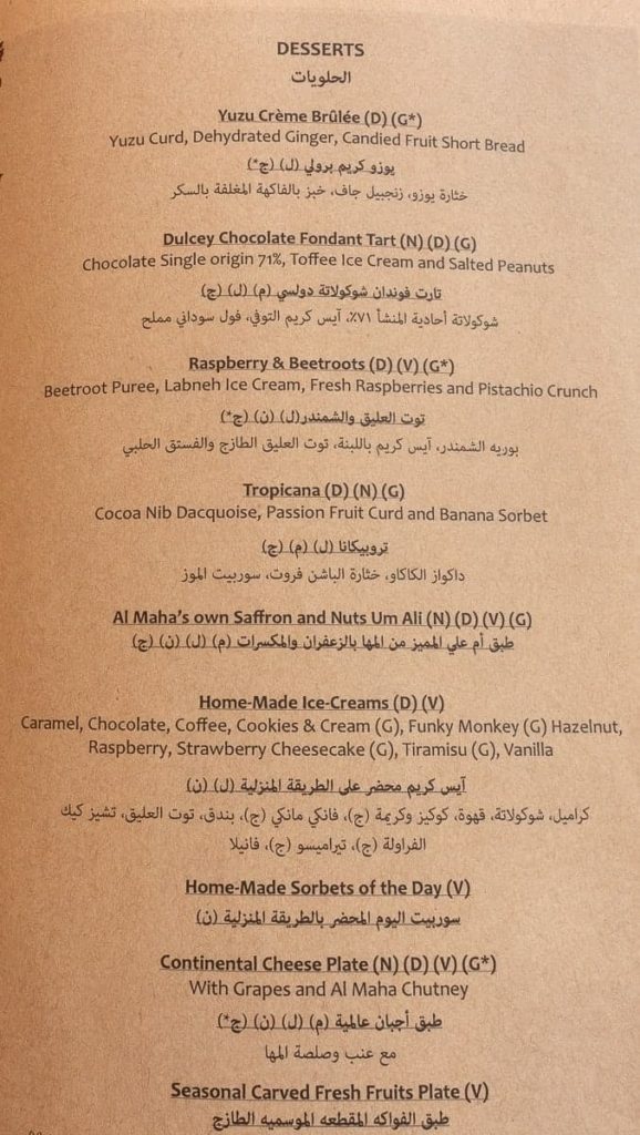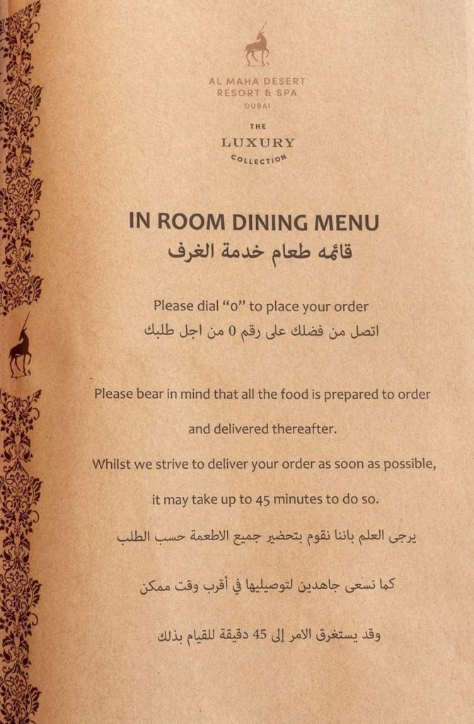 Dès notre arrivée, nous sommes pris en charge par plusieurs employés de l’hôtel Al Maha, a Luxury Collection Desert Resort & Spa, Dubai : l’un s’occupant de nos bagages, l’autre nous apportant des rafraîchissements, et un autre pour nous guider vers le salon d’enregistrement.