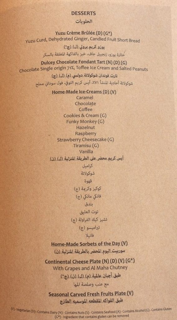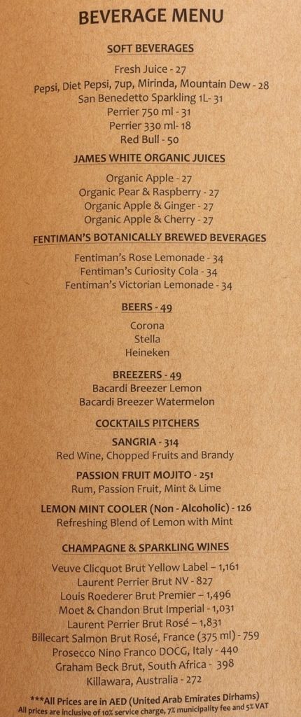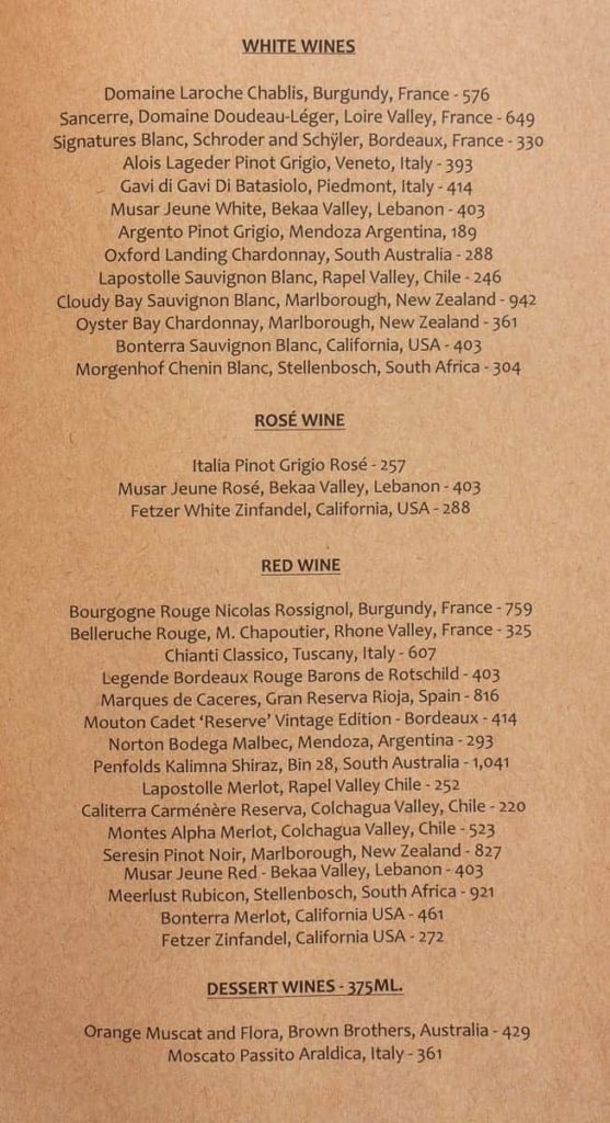 Autant vous dire que nous en avons bien profité tout au long de notre séjour en dégustant une bonne partie de la carte que voici: