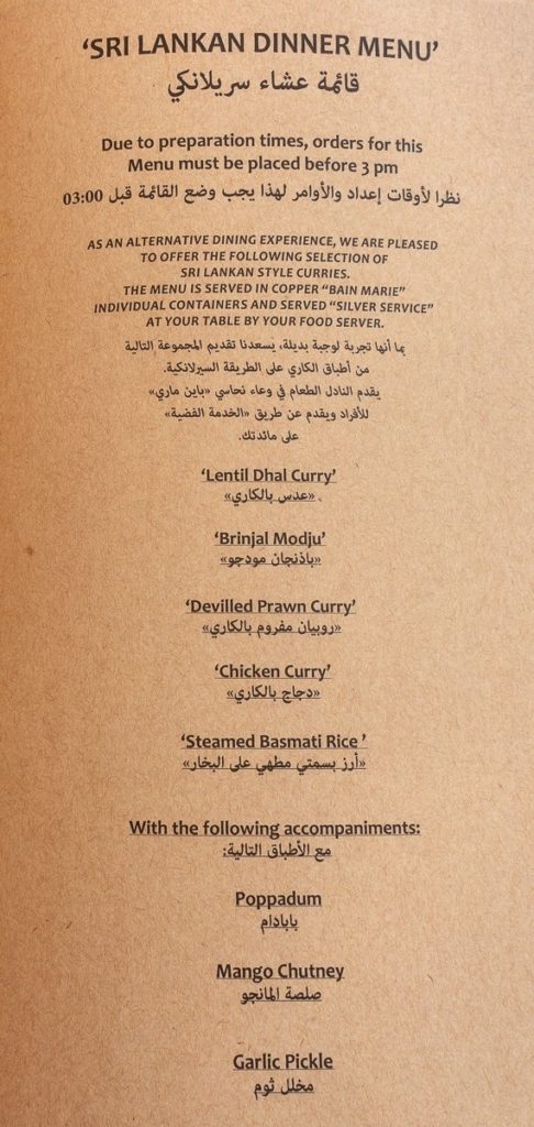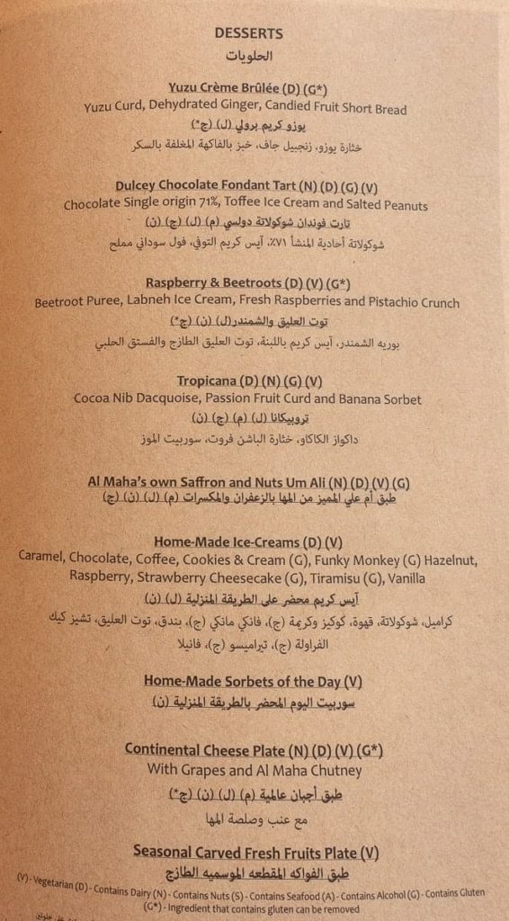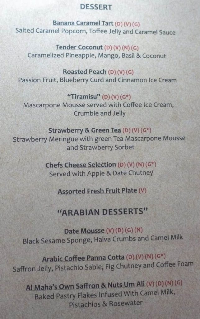 Ce qui fait la réputation de l’hôtel Al Maha, a Luxury Collection Desert Resort & Spa, Dubai : les soupers 5 services, chaque soir, sur la terrasse.