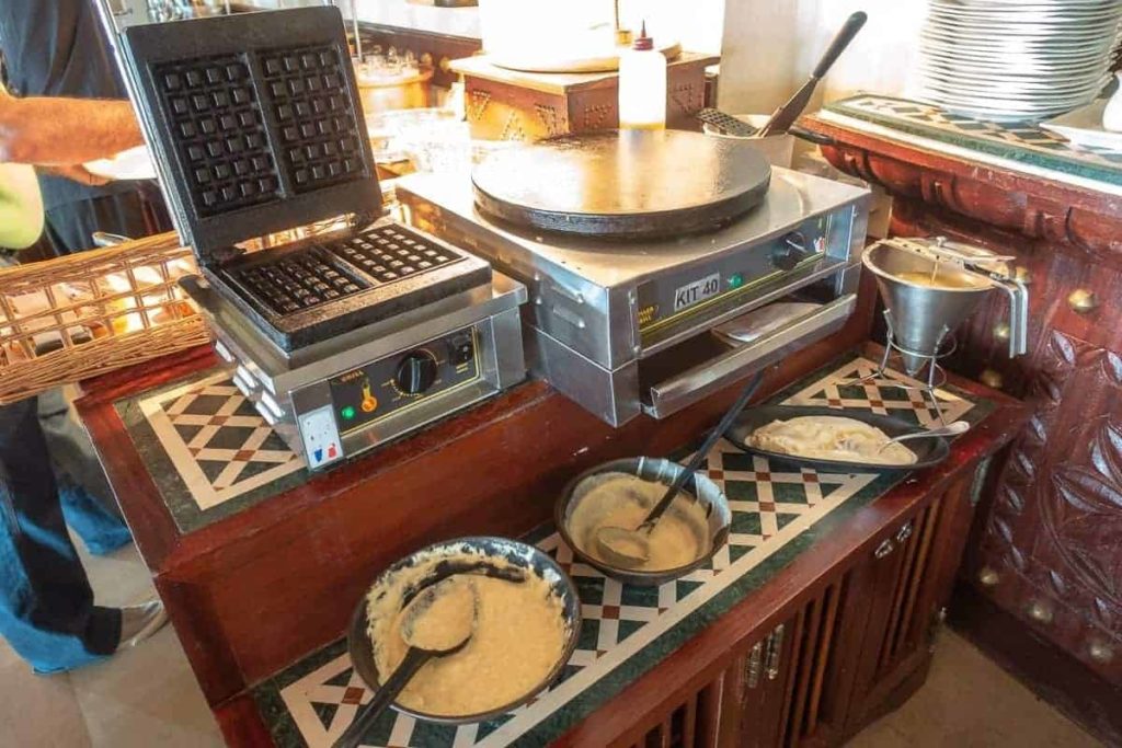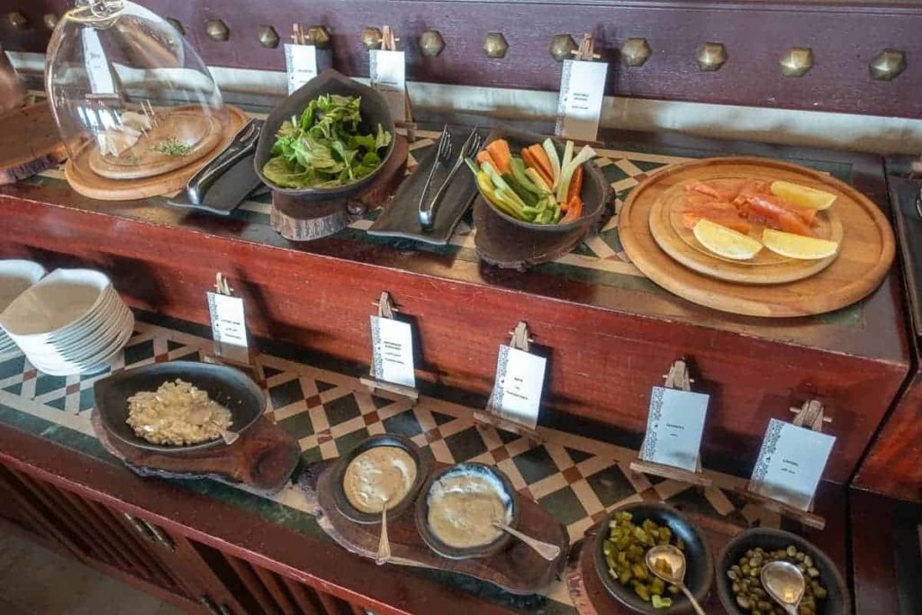 Au restaurant, c’est sous la forme d’un buffet. Rien sortant de l’ordinaire, mais les mets sont de qualité. On apprécie particulièrement le calme sur la terrasse et la faune environnante!
