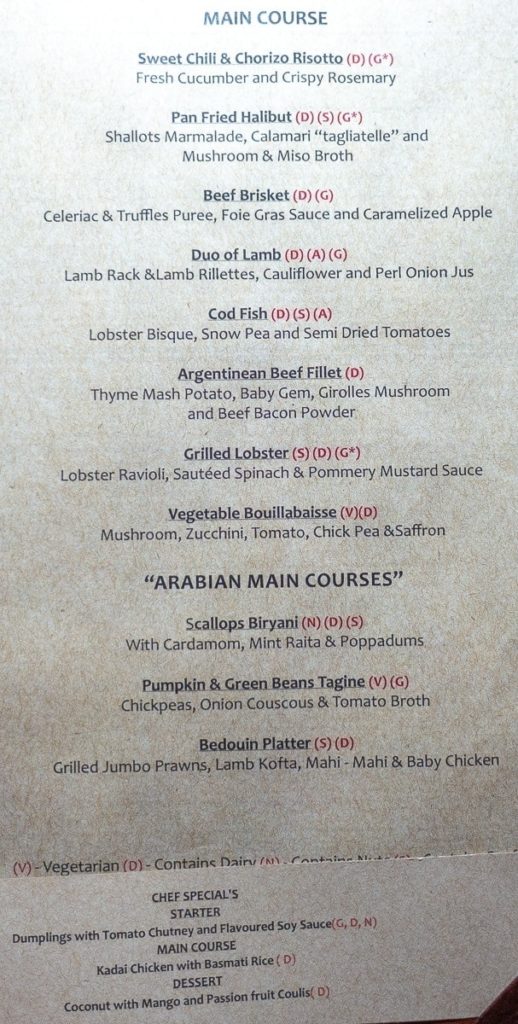 Au cours des 3 soupers, nous avons varié nos choix (et chaque soir, un menu spécial est proposé aux côtés des plats à la carte).