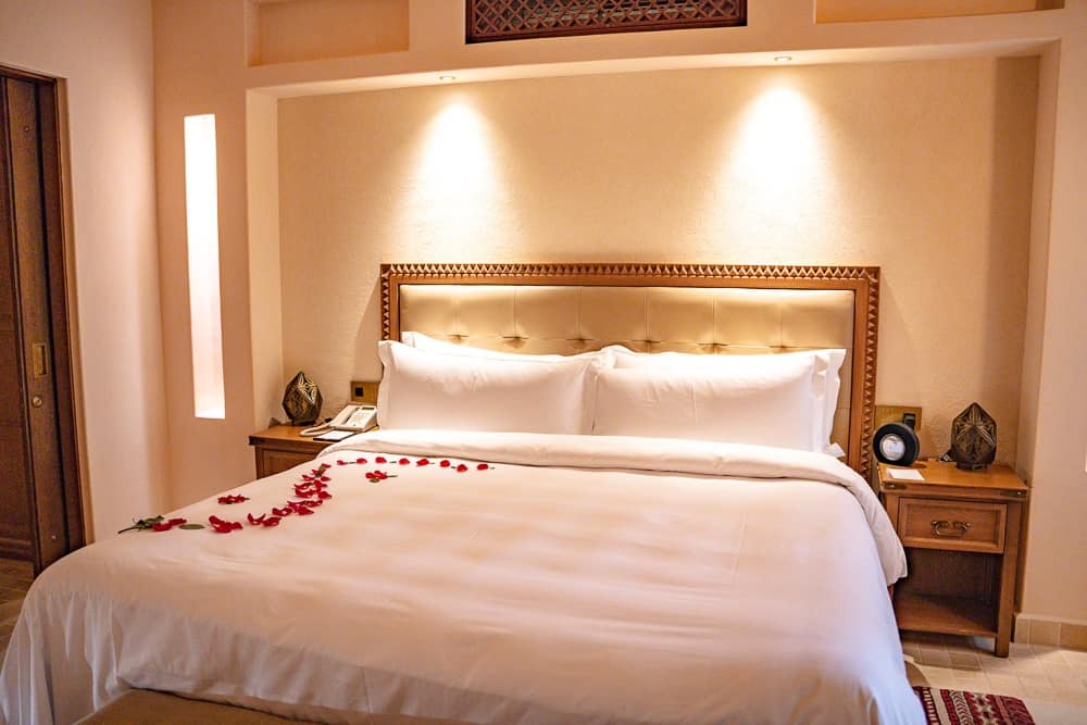 Vous trouverez plus d’une dizaines de catégories de chambres disponibles à l’hôtel A Wathba, aménagées à partir d’inspirations bédouines :
