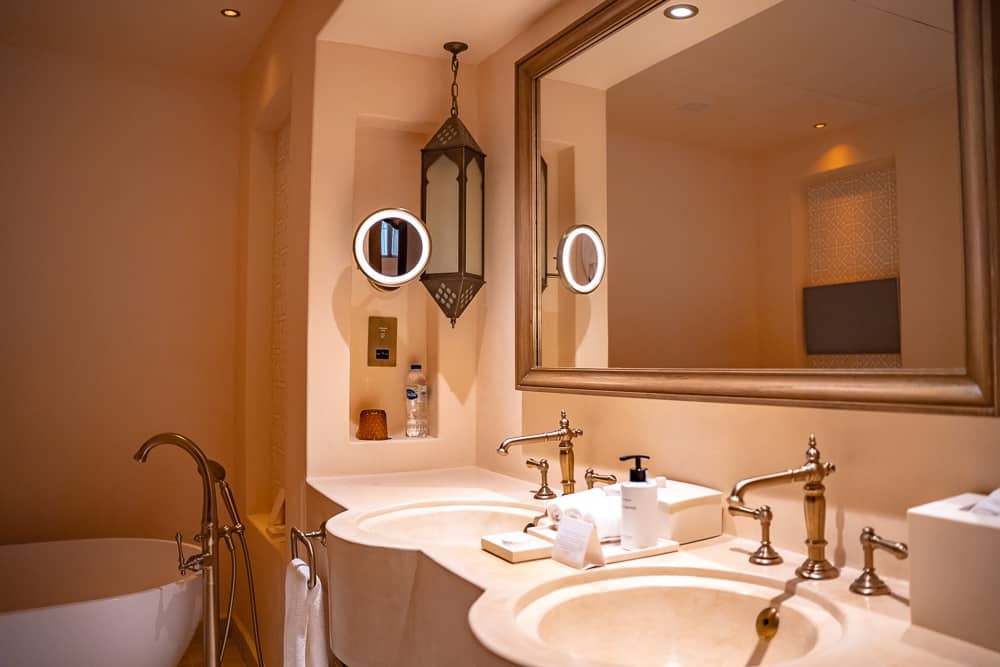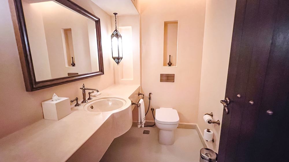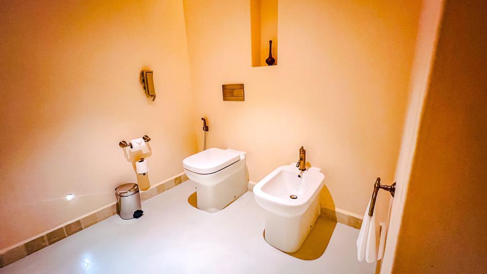 À notre arrivée, nous avons été surclassé en suite classique. Localisée au rez de chaussée, elle dispose d’une salle à manger avec un salon arabe et donne accès à une petite terrasse. Une salle d’eau est également disponible à l’entrée de la suite de belle grandeur.