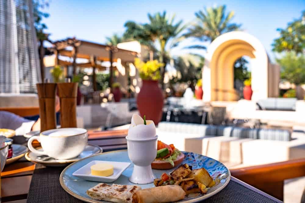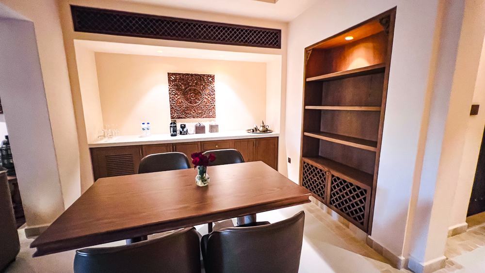 On retrouve un salon bar en étage, le Al Mesayan pour une vue dégagée sur le désert. L’endroit est très agréable, parfait pour observer le coucher de soleil et y faire une séance de mixologie assistée pour un cocktail signature de l’hôtel!