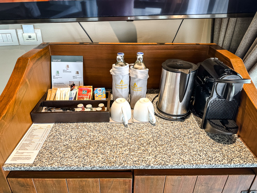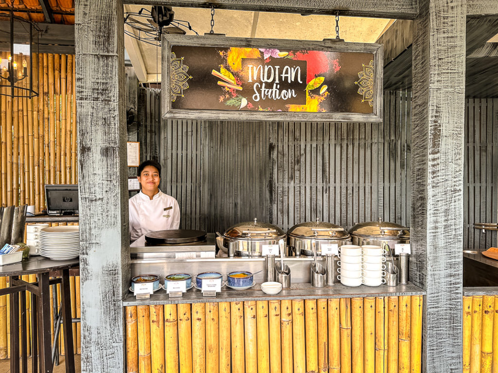 Le petit-déjeuner est servi sous la forme d’un buffet au restaurant Ocean Kiss de 7 h à 11 h. Le buffet offre un large choix d’options de spécialités asiatiques et continentales : Sushis, fruits frais, charcuteries, jus de fruits, viennoiseries et station de mets indiens. Un buffet complet pour tous les goûts et très bien approvisionné. Le personnel veille à ce que le buffet soit toujours bien rempli.