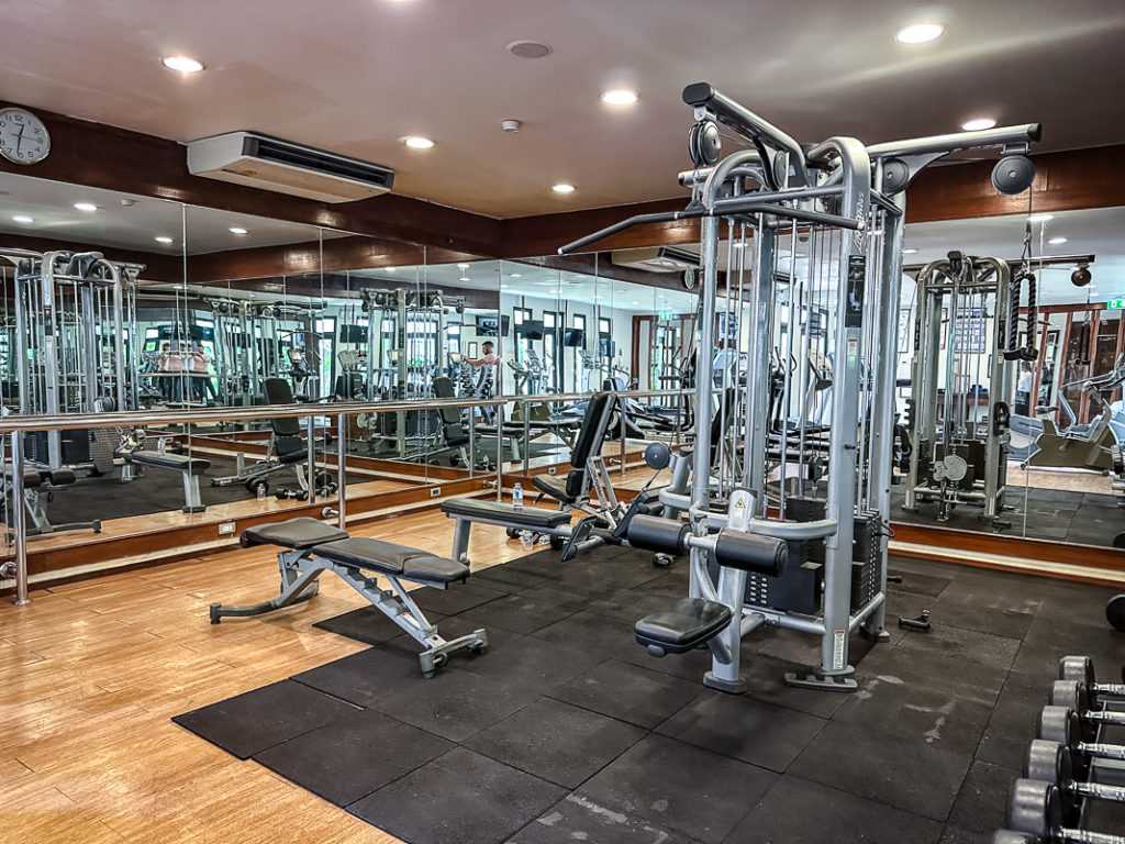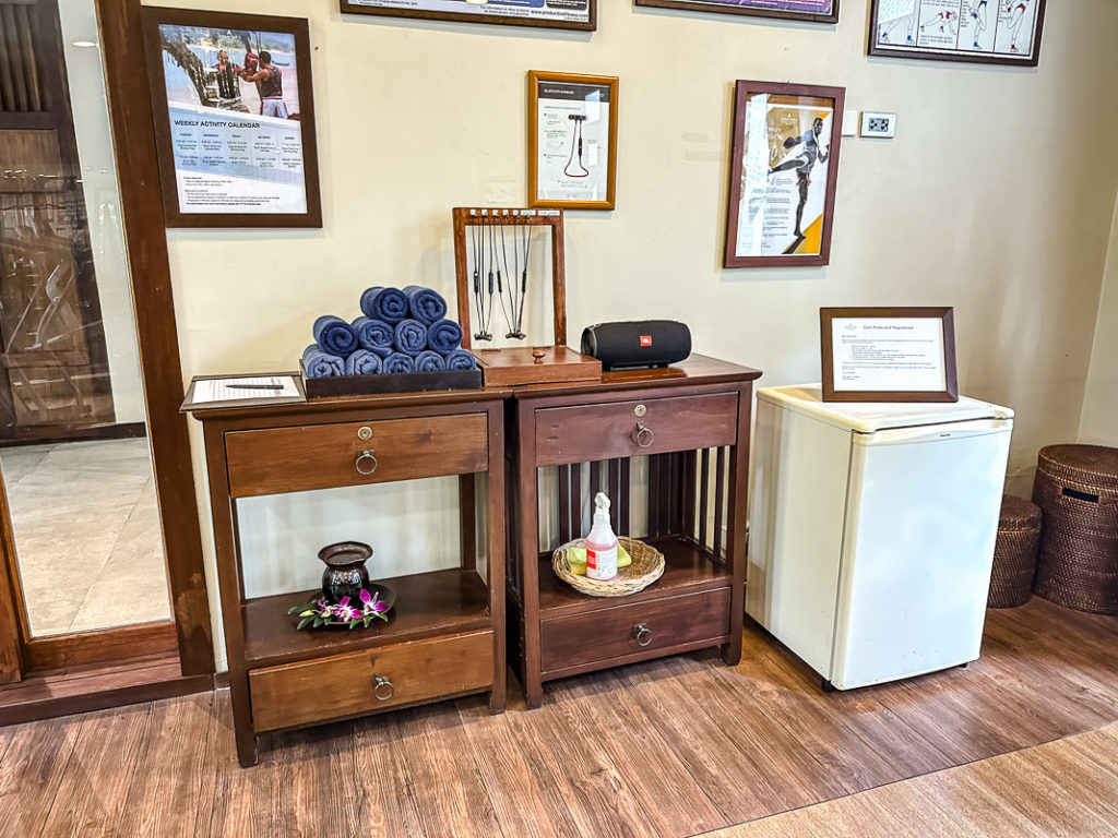 Le gym se trouve juste à côté de la réception et du spa et est accessible en tout temps. Il est très bien équipé, il y a des nombreux haltères ainsi que des équipements pour le cardio. Des bouteilles d’eau et des serviettes fraîches sont également à disposition.