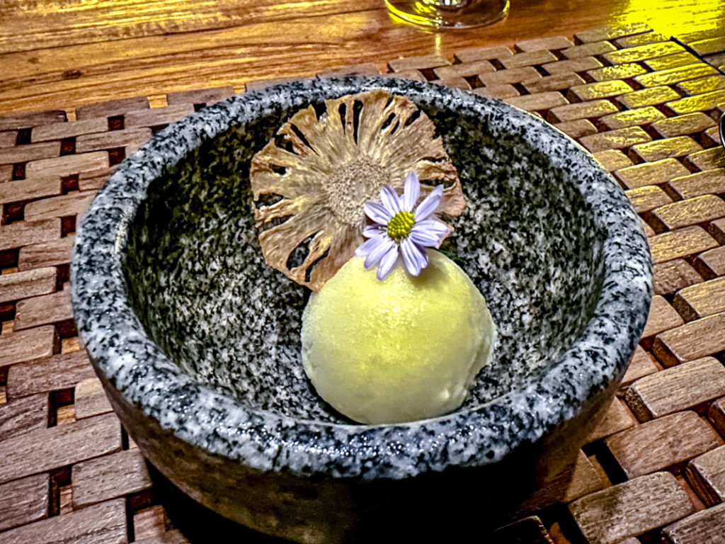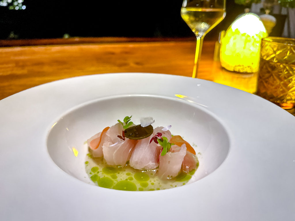 Le Tree Tops offre une double expérience. Il est perché dans les arbres vieux de plus de 120 ans, offrant une vue incroyable sur l’océan et le complexe en plus d’offrir une expérience culinaire unique. Le restaurant offre deux services, le premier de 18 h à 20 h 30 et le second à partir de 20 h 30. Vous aurez le choix entre 2 menus différents, l’un mélangeant terre et mer et un autre menu végétarien. J’ai choisi l’option terre et mer avec l’accord des vins qui ne compte pas moins de huit plats et cinq verres de vin. Si vous séjournez au Anantara Lawana, je vous recommande de réserver une table.
