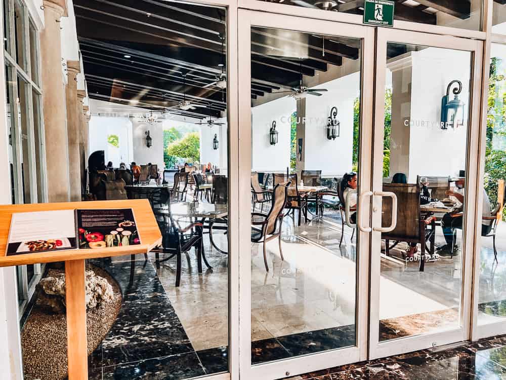 Le Courtyard Airport Cancun propose un restaurant ouvert de 12 h à 23 h pour le dîner et le souper ainsi qu’un menu de service aux chambres que vous pouvez consulter ici. Il y a autant de places pour s’asseoir à l’intérieur qu’à l’extérieur, côté jardin et piscine.