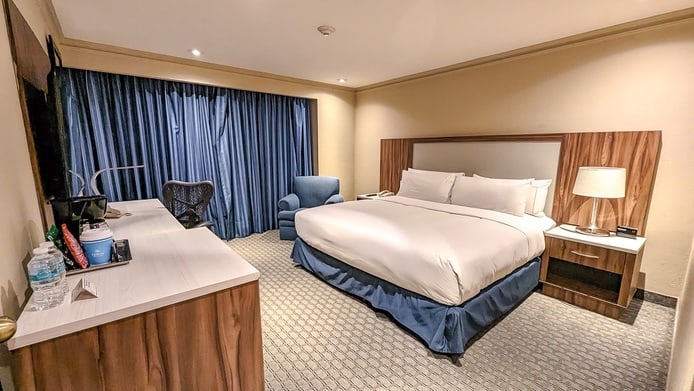 On sent que l’hôtel entier a « du vécu » et les chambres ne font pas exception. D’une grandeur très confortable, l’air de la chambre est un peu vicié quand la climatisation est éteinte. Les fenêtres n’ouvrant pas, l’air ne peut circuler, ce qui donne à la chambre une odeur “de renfermé”. Par contre, une fois la climatisation activée, l’odeur se disperse un peu.