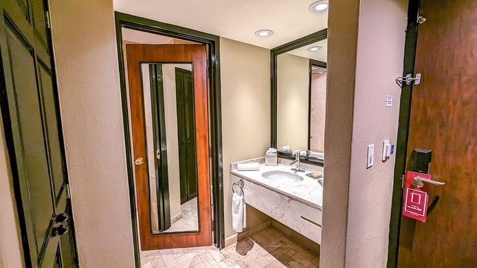 Le service aux chambres est disponible 24h et offre une variété de mets mexicains et internationaux. Pour commander, il faut scanner le code QR qu’on retrouve sur un petit carton. Le menu est le même que celui du restaurant situé dans le lobby.