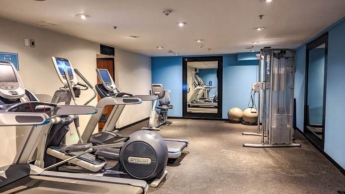 Le gym est ouvert 24h et on y retrouve les équipements de base pour faire de la musculation et du cardio.