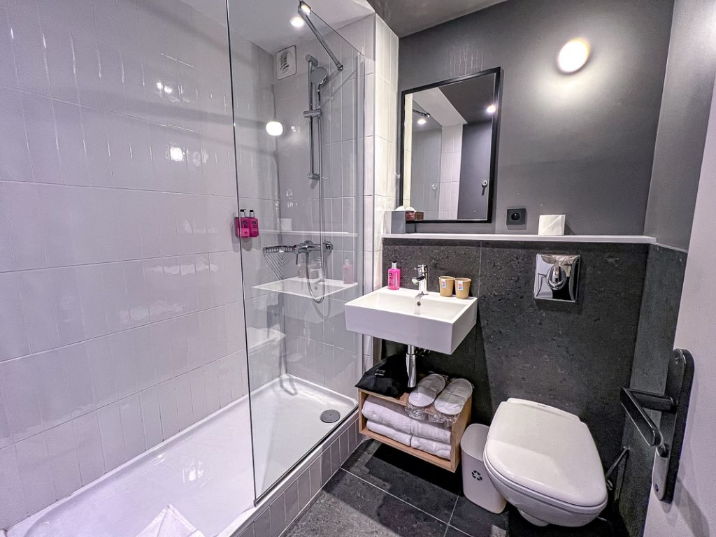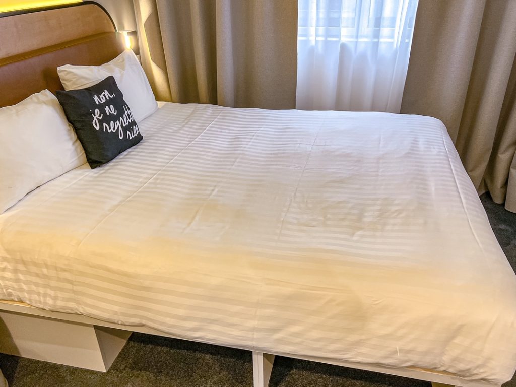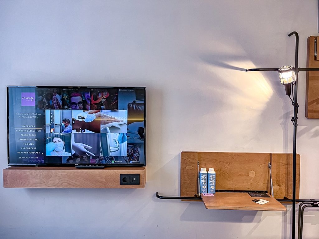 Ma chambre, munie d’un lit queen et d’une télévision intelligente à écran plat, était très compacte mais il fallait s’y attendre pour un hôtel de la marque Moxy situé au cœur de Paris.