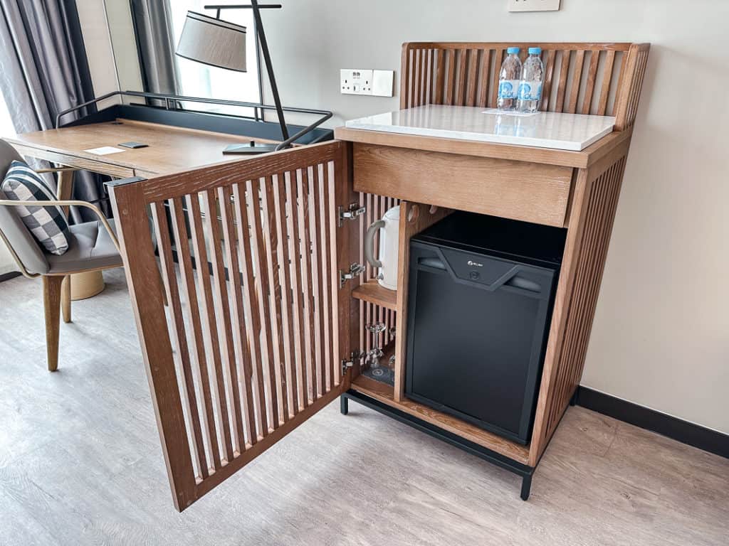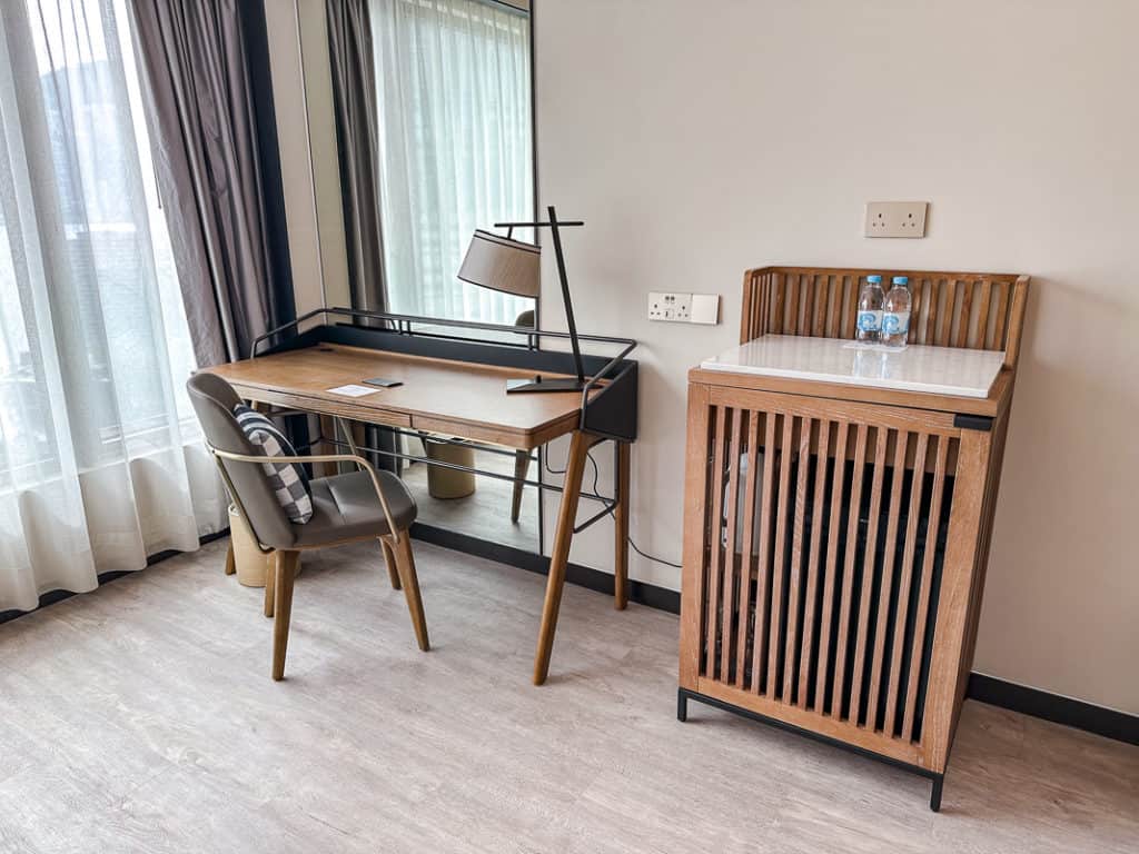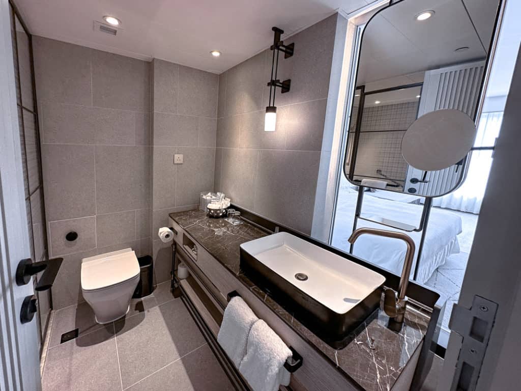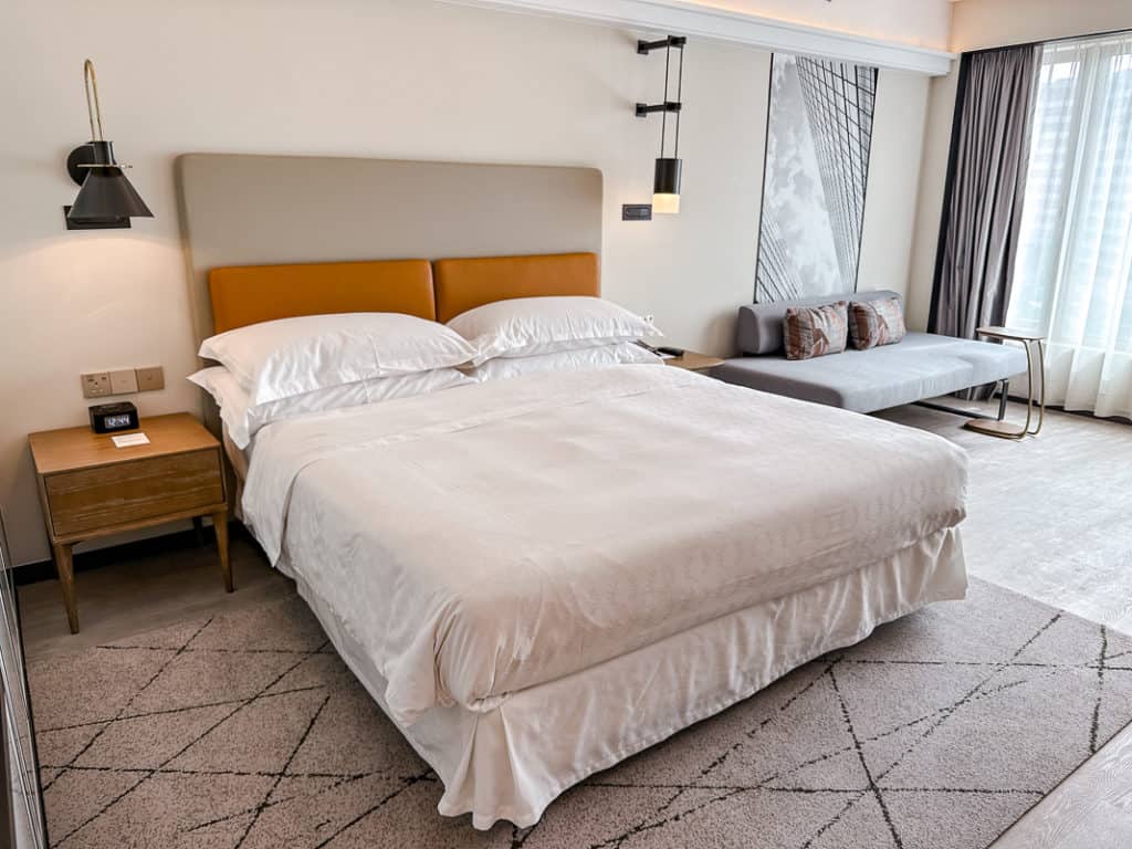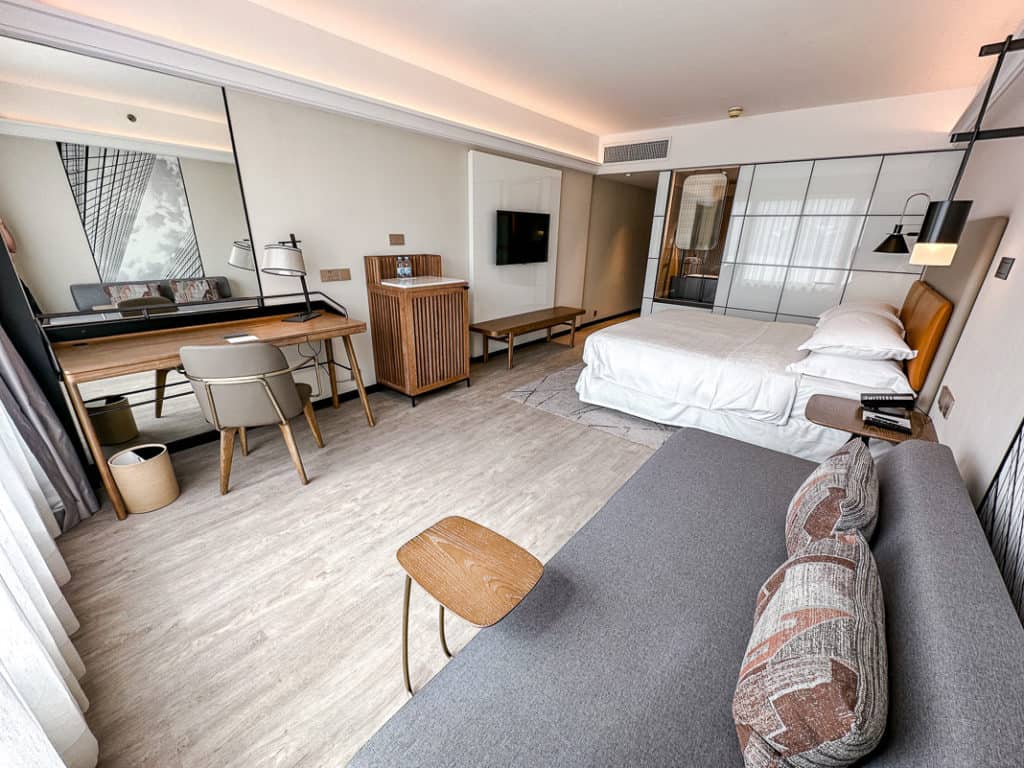 La chambre est très bien agencée avec un espace sofa pour admirer la vue et un espace bureau. Étant en télétravail, j’ai beaucoup apprécié le grand bureau.