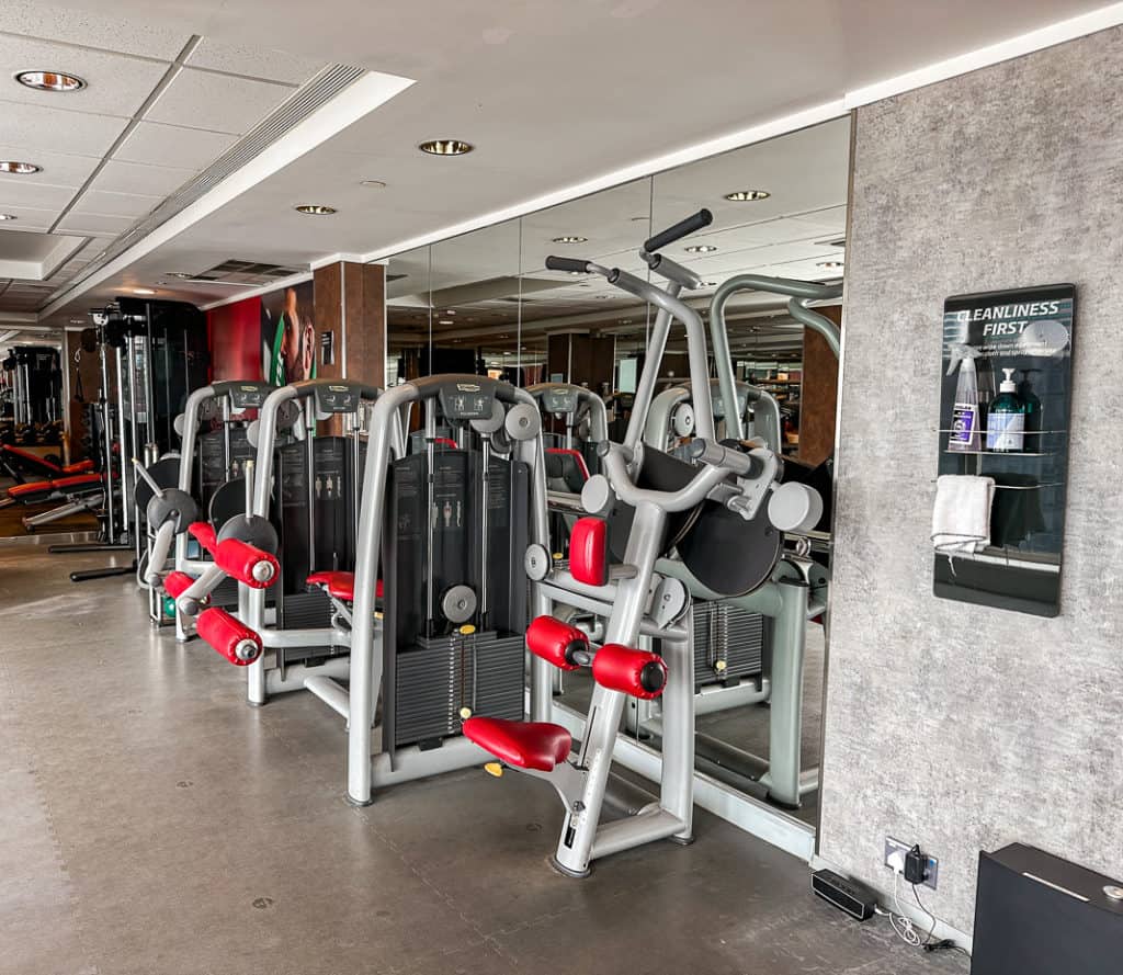 Le gym est ouvert de 7 h à 22 h. On y retrouve le nécessaire pour faire du cardio et de la musculation. Étant fait sur toute une longueur, je l’ai trouvé assez étroit et pas très invitant.