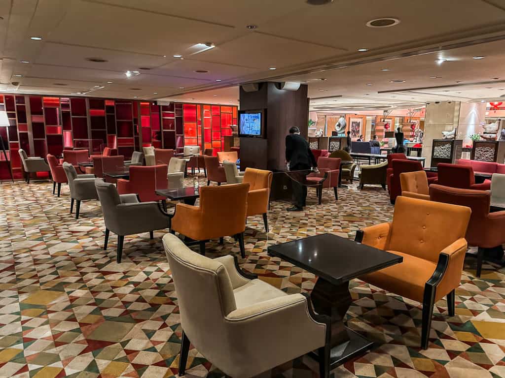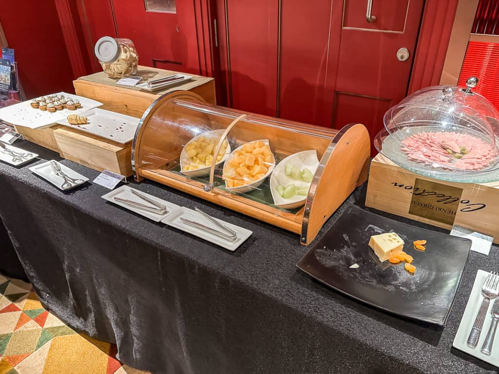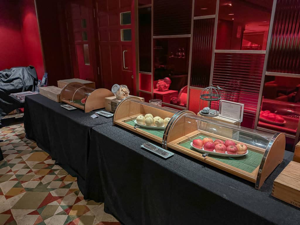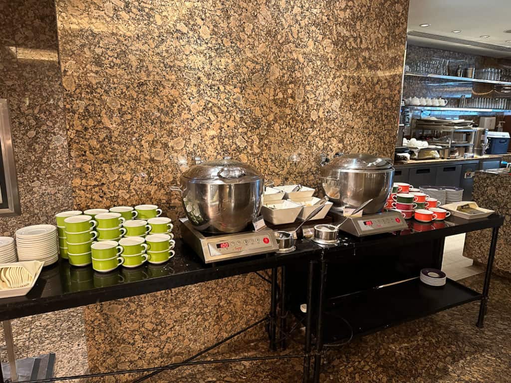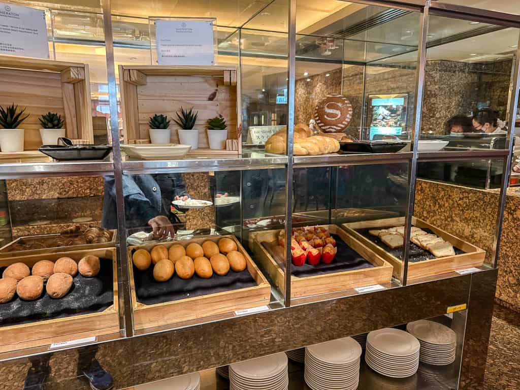 Le Sheraton Club Lounge se trouve dans le lobby de l’hôtel. Il est ouvert de midi à 18 h 30. À partir de 16 h 30 jusqu’à la fermeture, il est servi des cocktails et hors d’œuvres et c’est l’heure de pointe, il peut être difficile d’avoir une place. La durée de consommation au salon est limitée à 1 heure. En dehors de la période des hors-d’œuvre, outre le thé et le café, j’ai été assez déçu, car il y avait vraiment peu de choses à manger autres que des macarons et des pommes.