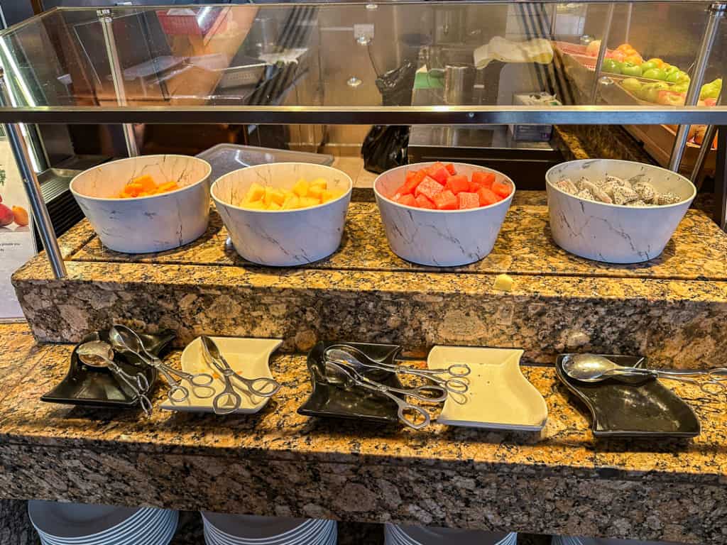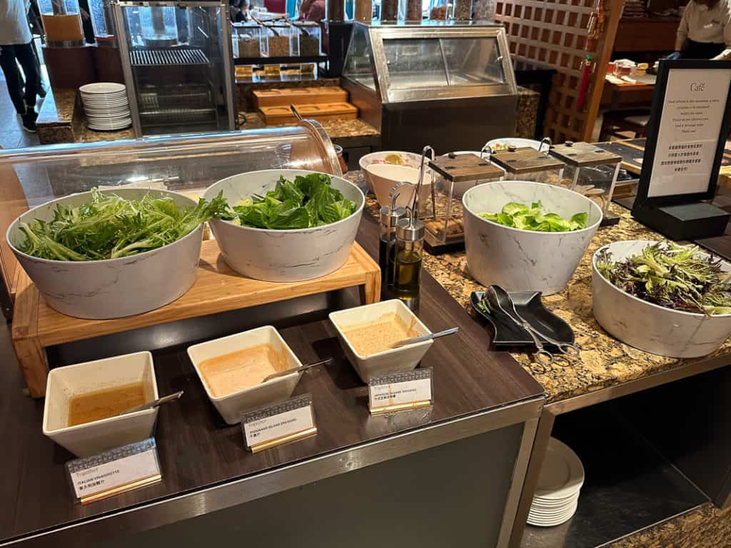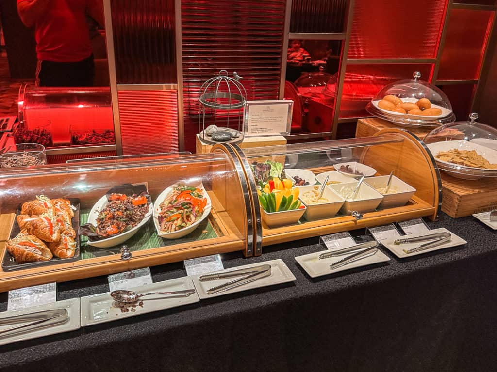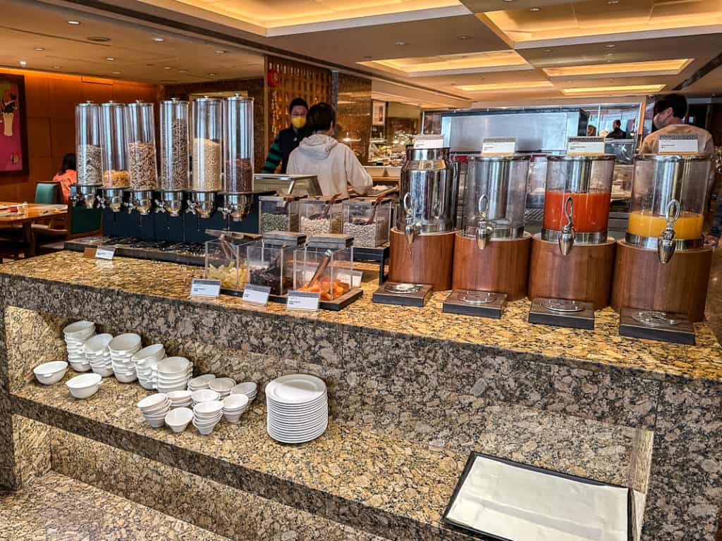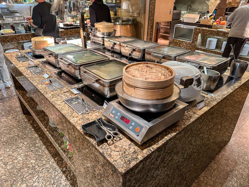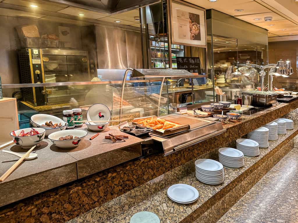 Le buffet est très complet et bien tenu. Une station de jus de fruits permet d’avoir des jus frais selon l’envie du moment. Également, on trouve une station pour les œufs et une autre pour les nouilles asiatiques. J’ai vraiment apprécié la variété offerte par ce buffet. Il y en a pour tous les goûts.