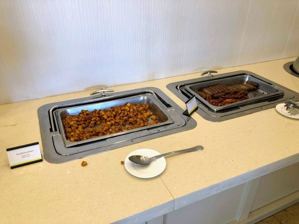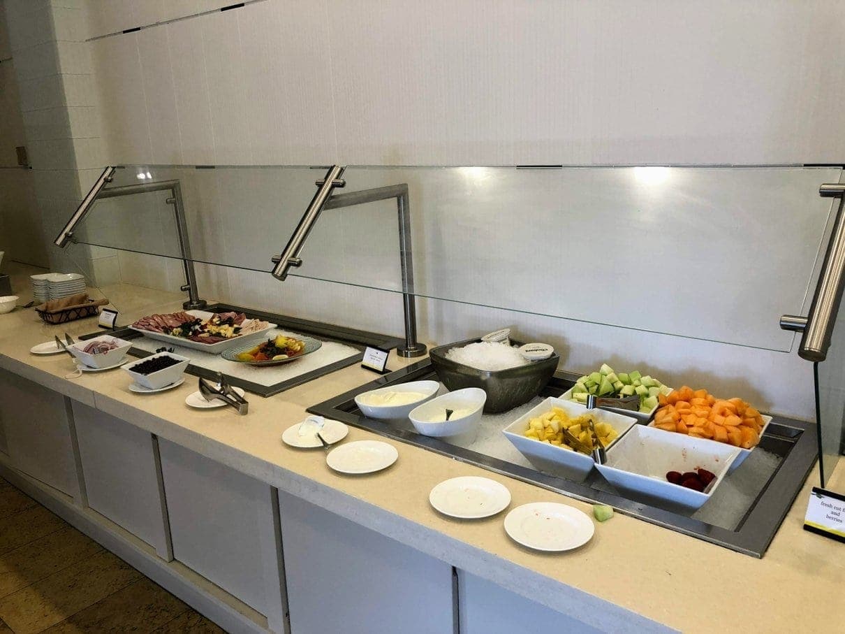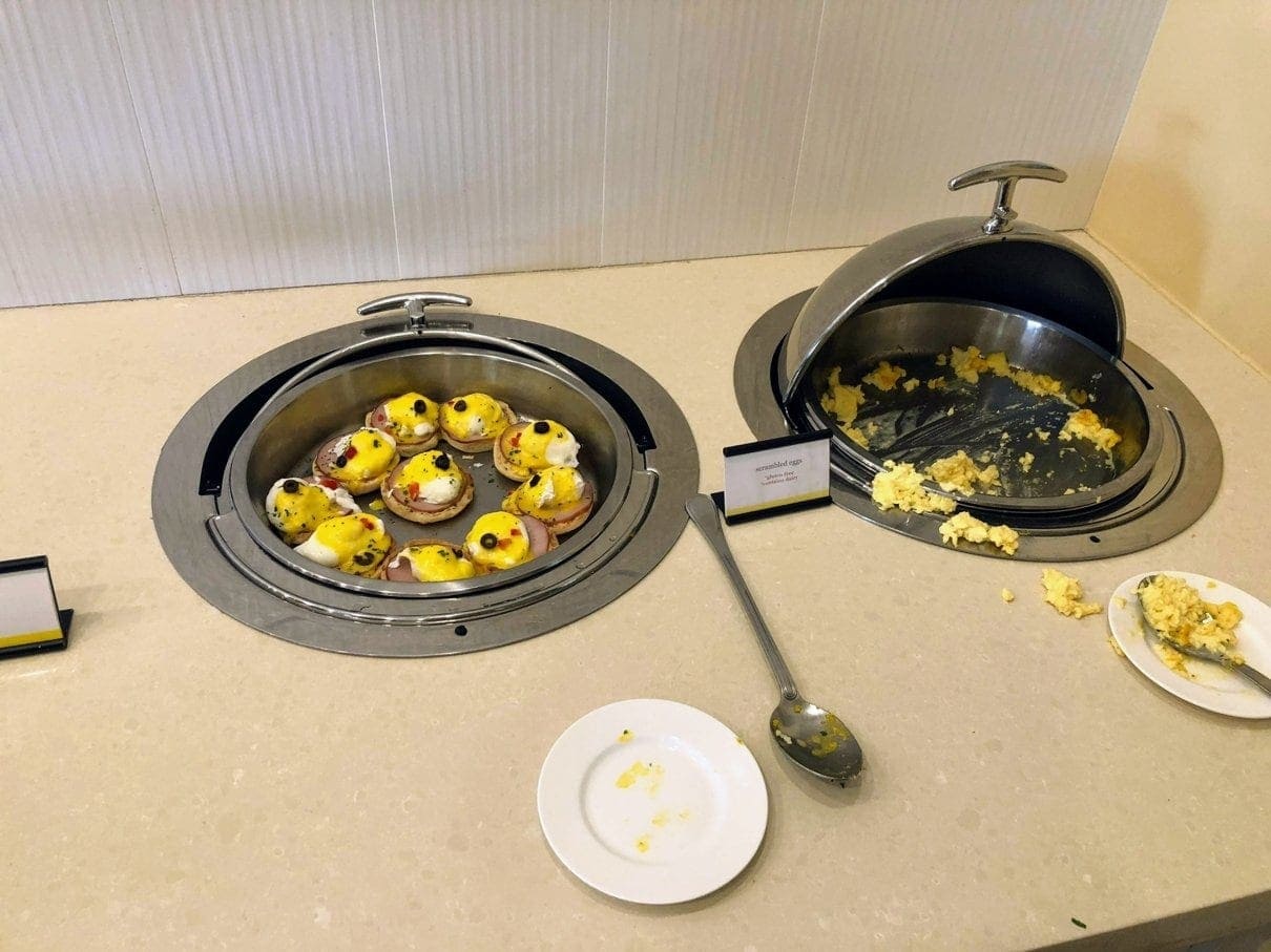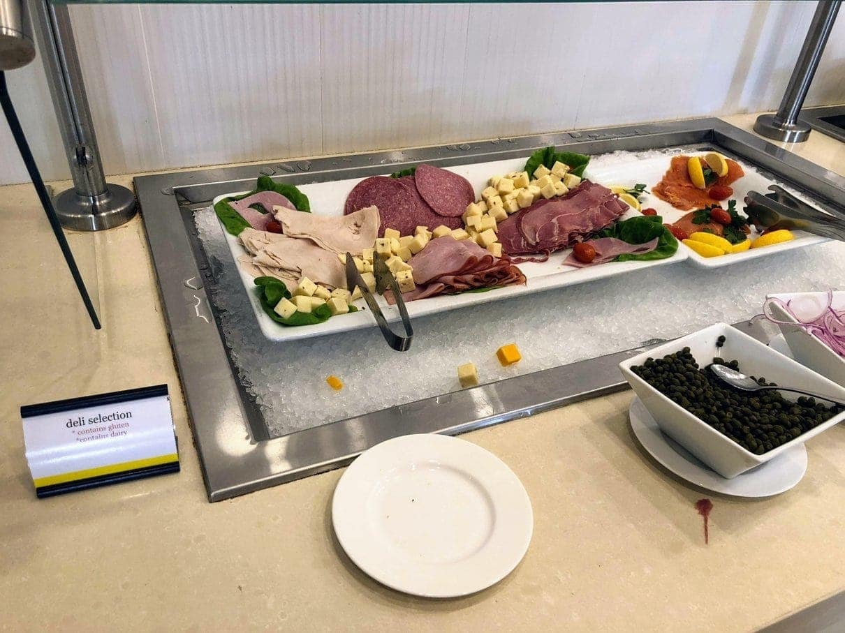 Notre statut Platinum nous donne droit au buffet… froid. Si vous souhaitez accéder au plats chauds (omelettes, bacon…), il faut rajouter 5 US$ par personne. Nous sommes en été, il fait 40 degrés, le froid suffira!