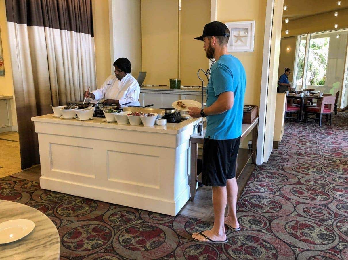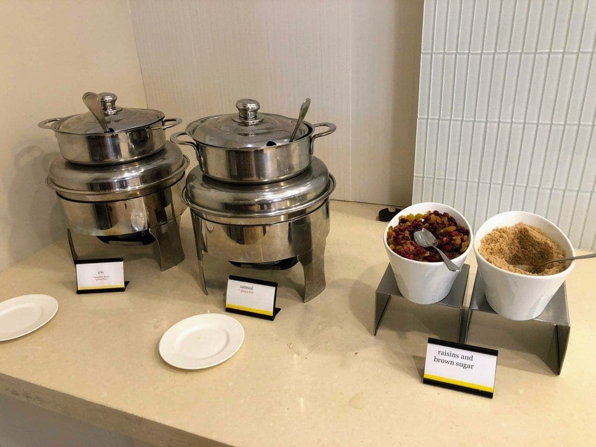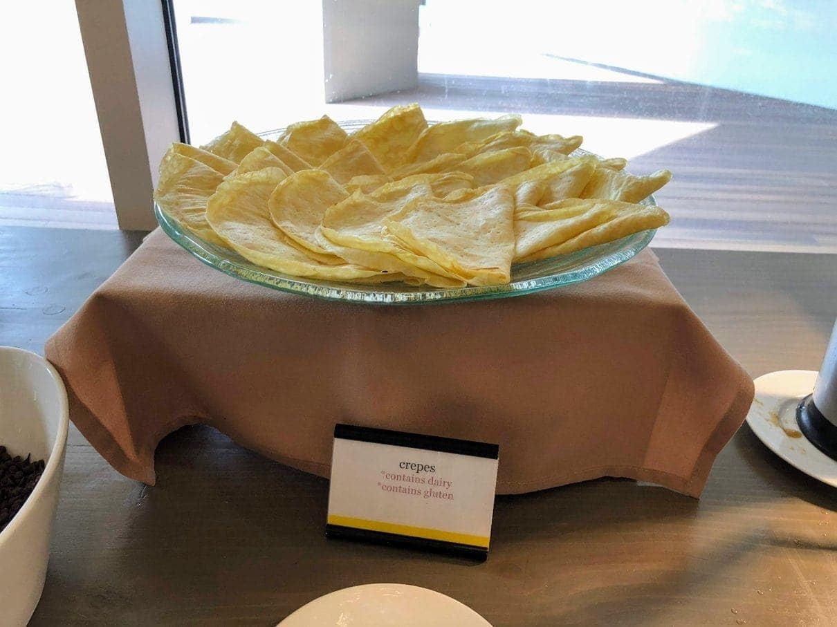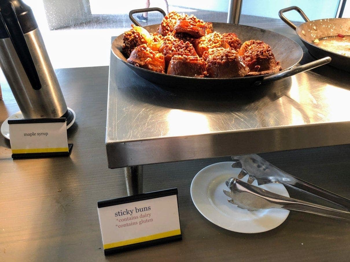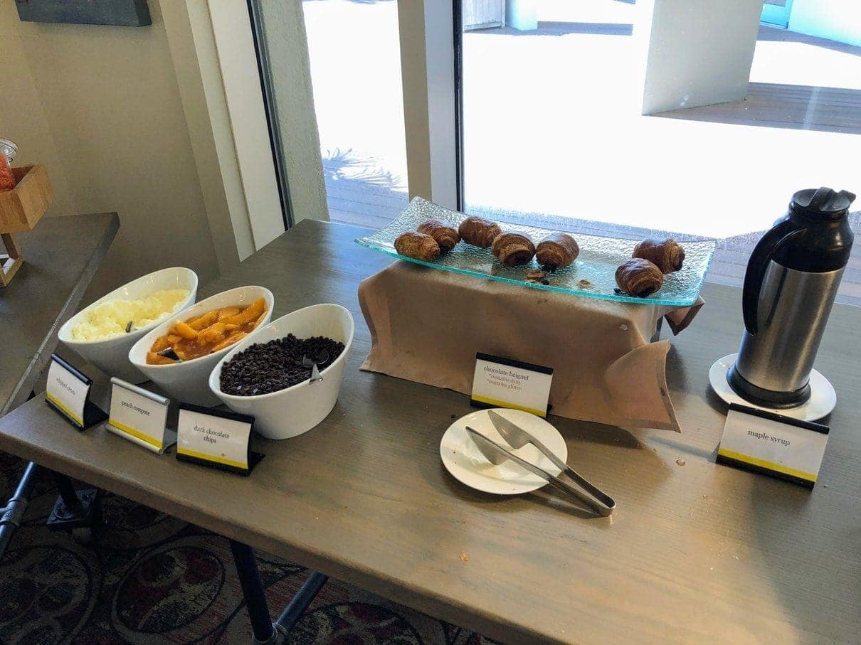 Notre statut Platinum nous donne droit au buffet… froid. Si vous souhaitez accéder au plats chauds (omelettes, bacon…), il faut rajouter 5 US$ par personne. Nous sommes en été, il fait 40 degrés, le froid suffira!