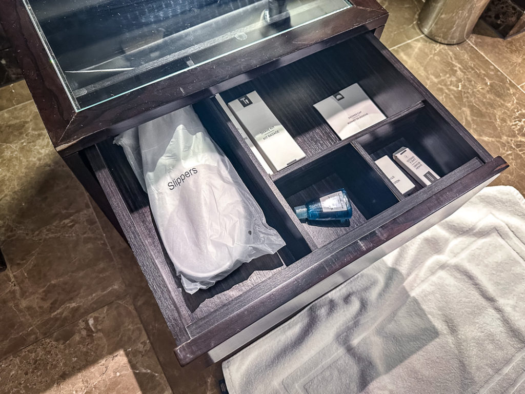 Bien que correctement équipée, la salle de fitness du Conrad London St. James se situe au sous-sol de l’hôtel sans aucune fenêtre. L’absence de luminosité extérieure est donc un frein à mes yeux pour s’entraîner.