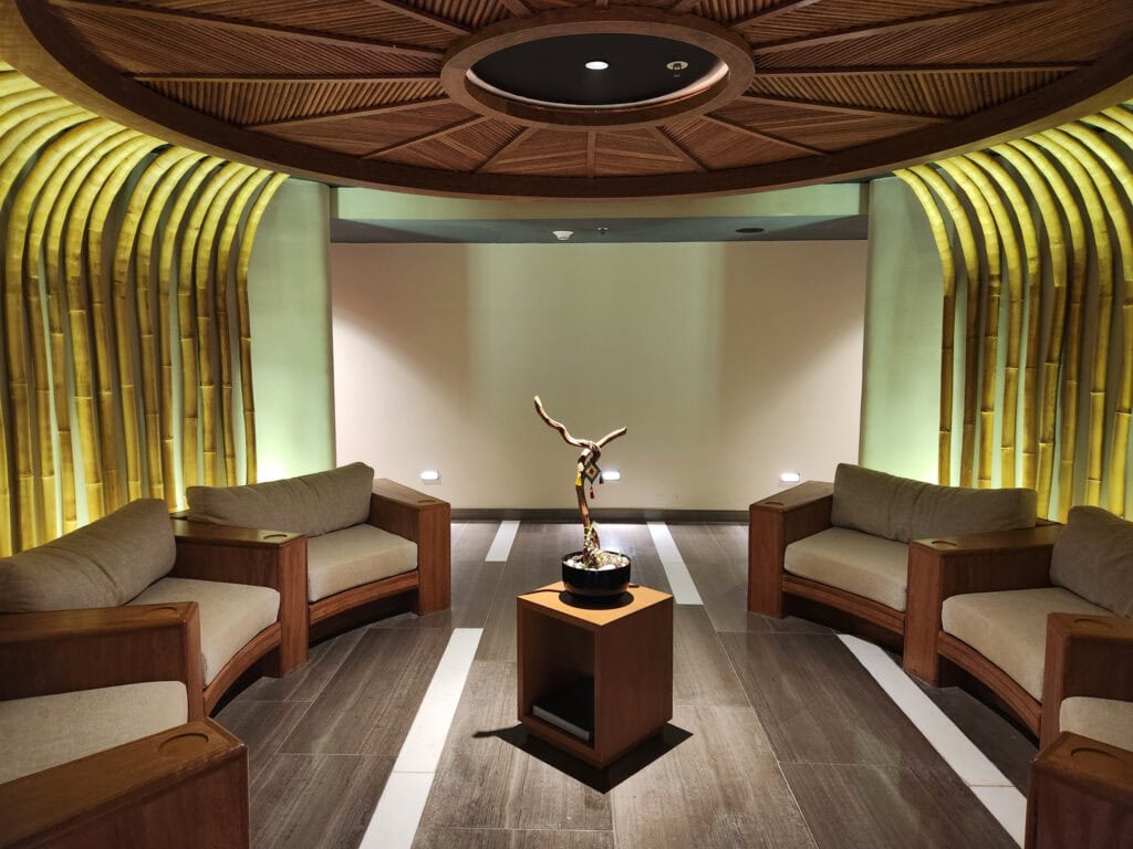 La réception et le hall d’entrée sont tout à fait magnifiques, avec de nombreux sièges confortables, un bar intégré, plusieurs bureaux de réception et des œuvres d’art mexicaines.
