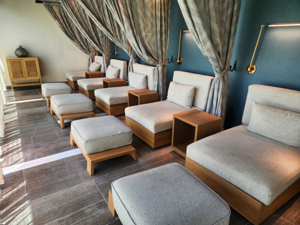 Enfin, un magnifique spa se trouve à côté de la salle de sport. Une gamme complète de services est proposée, notamment des traitements pour les cheveux et les ongles, ainsi que des soins corporels et des massages. Il s’agit d’un vaste complexe comprenant des bains à remous et des saunas dans les vestiaires, ainsi qu’un complexe complet de piscines et de bains à remous à l’extérieur.