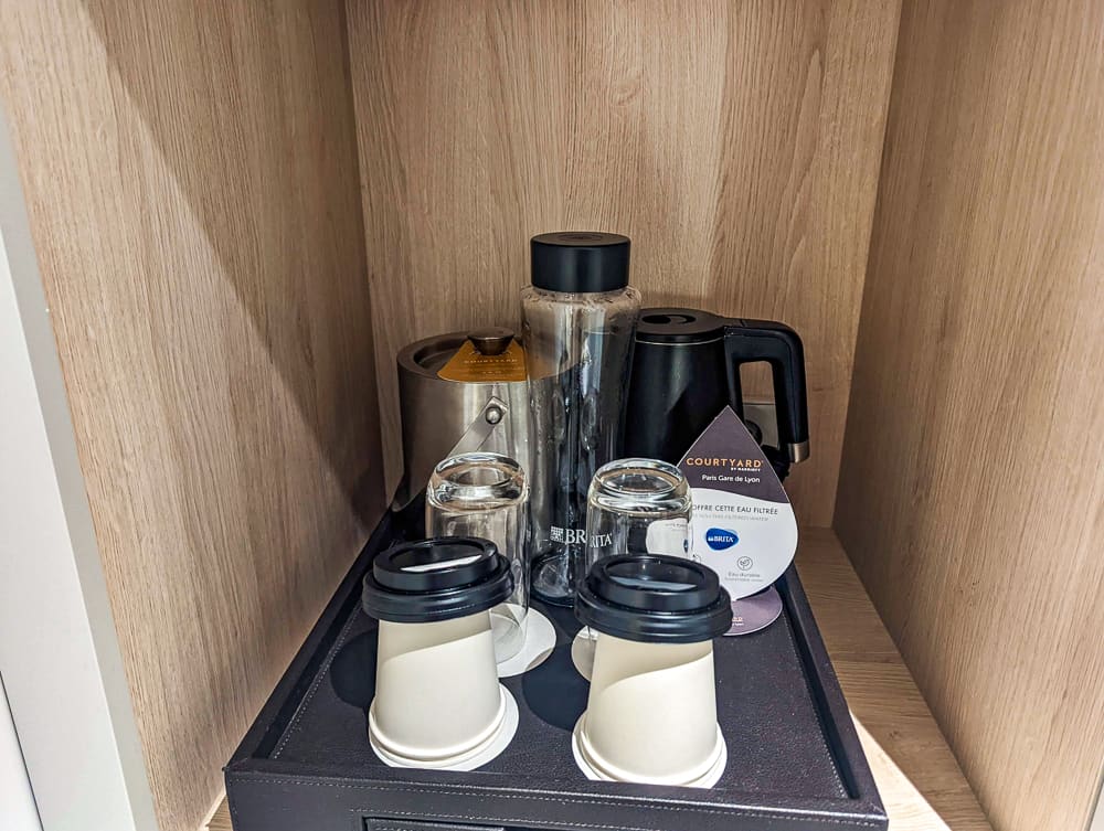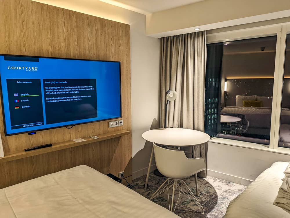 Bien que l’on puisse comparer et retrouver les éléments distinctifs d’un hôtel Courtyard en Amérique du Nord, je constate tout de même que les tarifs pratiqués sont bien plus élevés que pour des hôtels similaires dans des villes comme Montréal, Toronto ou même New York ; avec des chambres débutant à plus de 249 € la nuit en semaine.