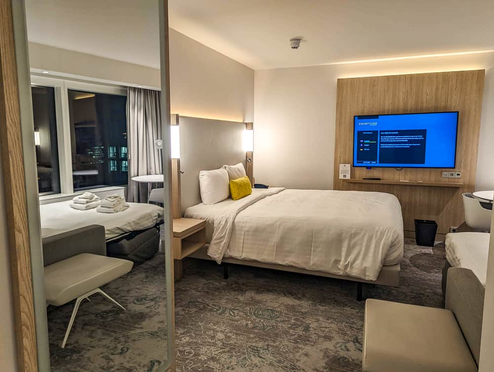 Profitant d’un statut Marriott Titanium, j’ai eu la chance de voir ma réservation d’une chambre standard se convertir en une chambre familiale à étage élevée (18e étage).