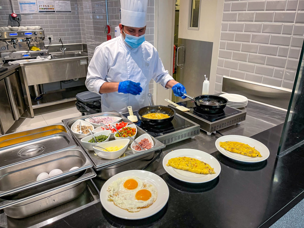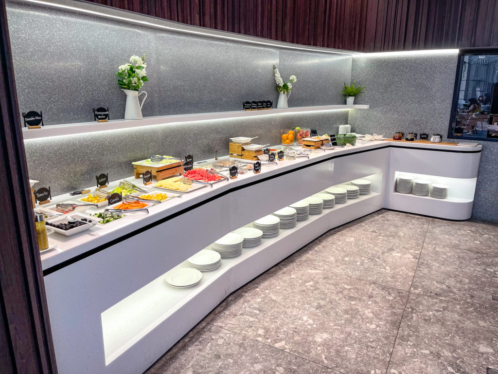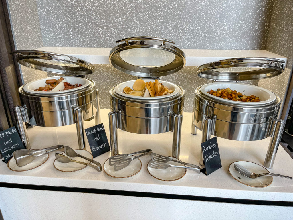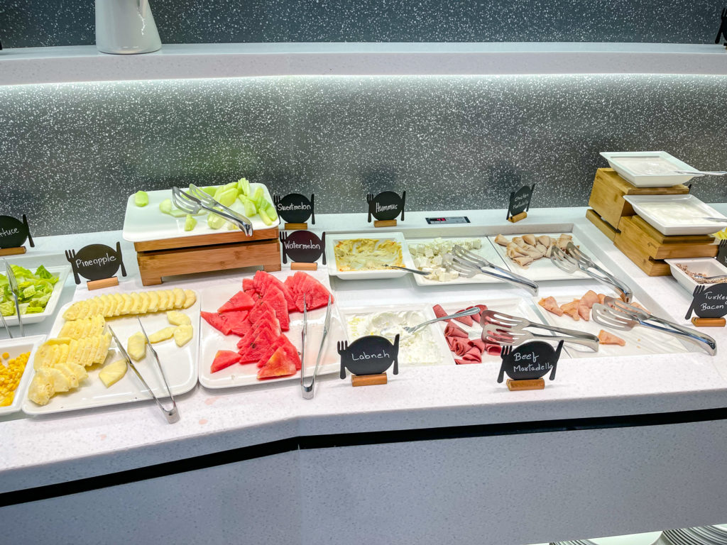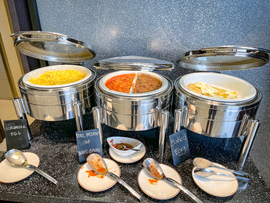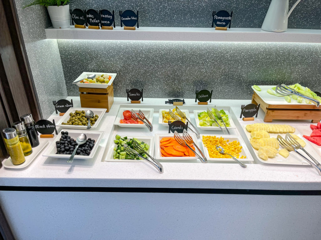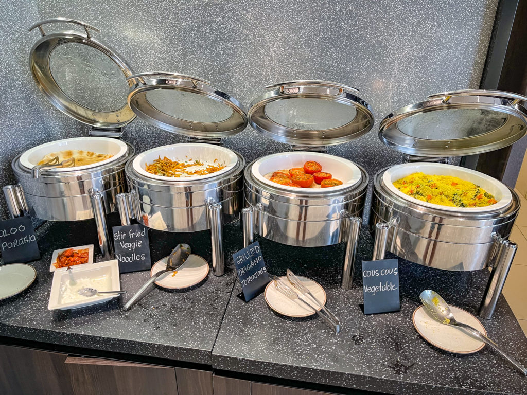 Des buffets froids et chauds sont disponibles, avec une variété correcte d’aliments (et la présence de plusieurs spécialités épicées).
