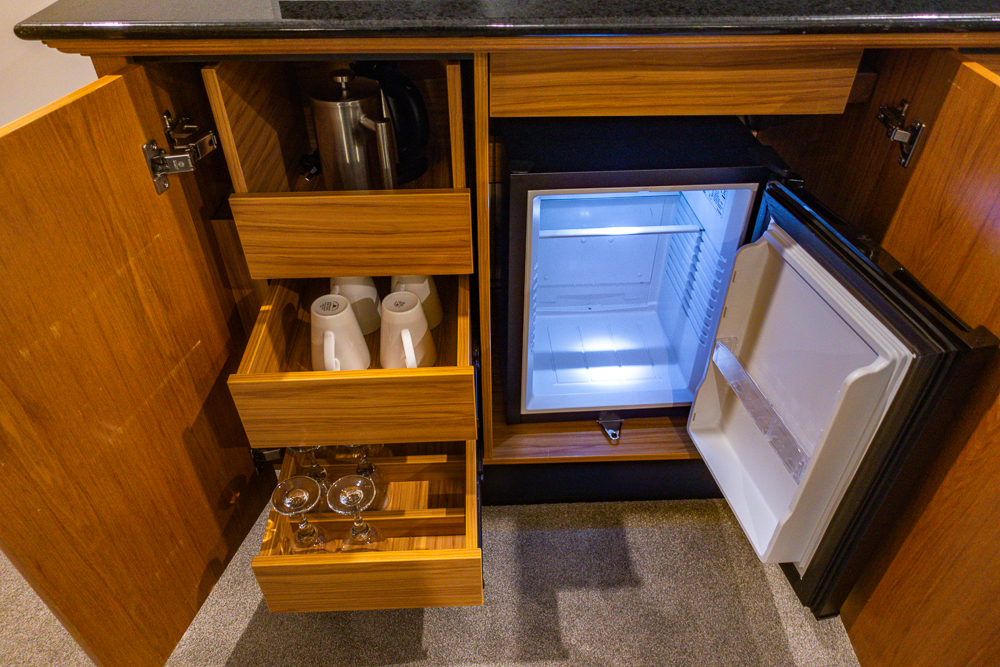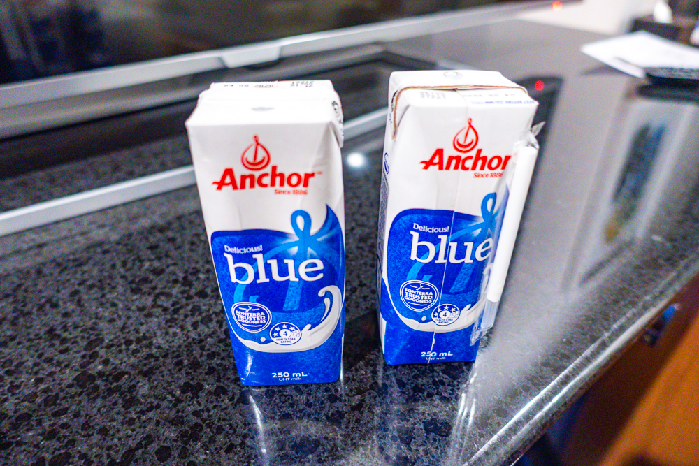 Dans la chambre parentale, nous avions un meuble supplémentaire pour les valises. Un frigo était disponible avec bar aussi. Deux briques de lait nous avaient été données pour les enfants.