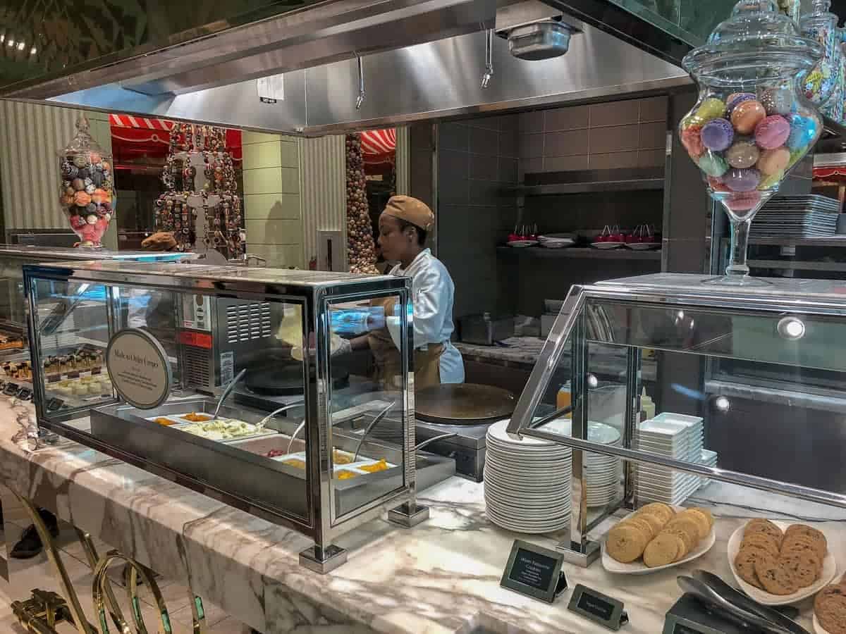 Ayant profité d’un réveil tardif (Hey! Pour une fois que nos enfants ne nous lèvent pas à l’aube!), nous avons décidé d’utiliser notre crédit de 80 US$ (40 US$ par personne) au buffet du Wynn pour dîner plutôt que déjeuner !