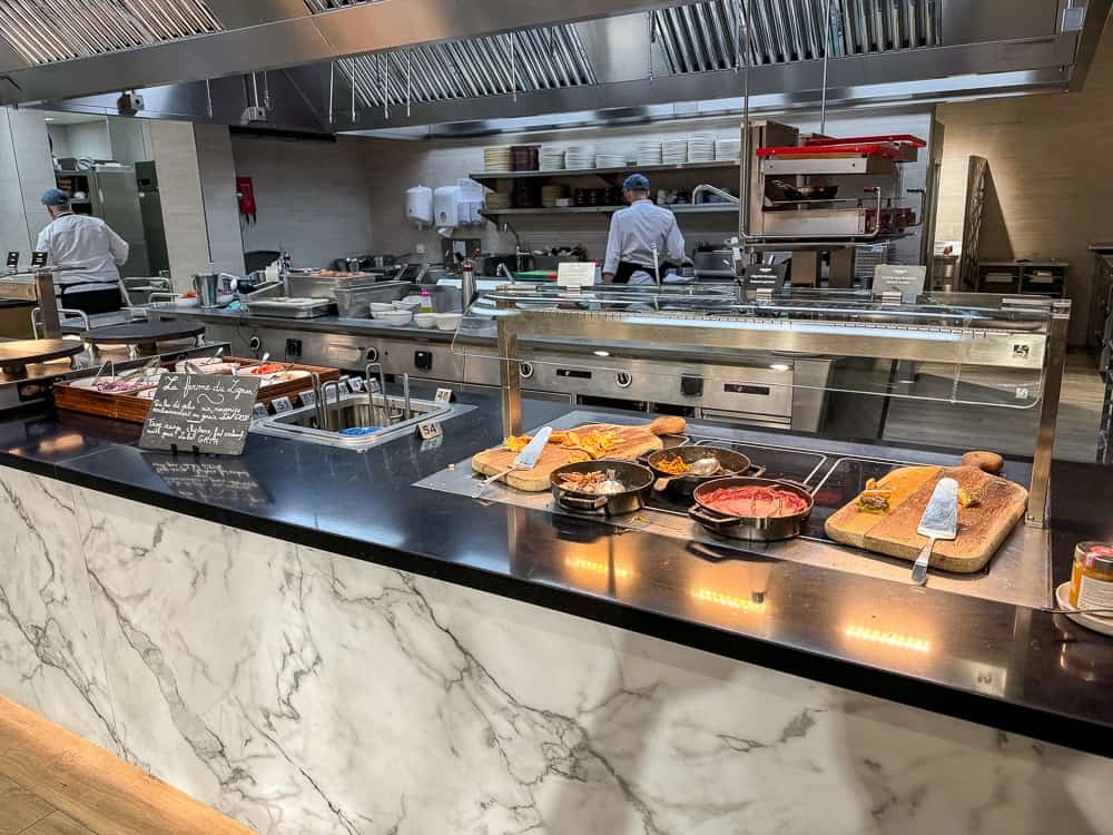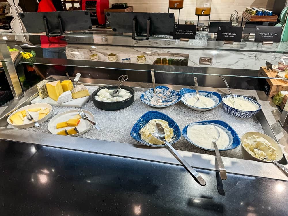Le petit déjeuner est servi sous la forme d’un buffet au restaurant Moments – Social Eatery de 6h à 10h en semaine et de 6h30 à 10h30 la fin de semaine. Dès notre arrivée, on nous a expliqué que la plupart des produits proviennent de producteurs locaux. D’ailleurs, on peut trouver sur le mur principal, une grande carte de la Suisse indiquant la provenance des aliments.