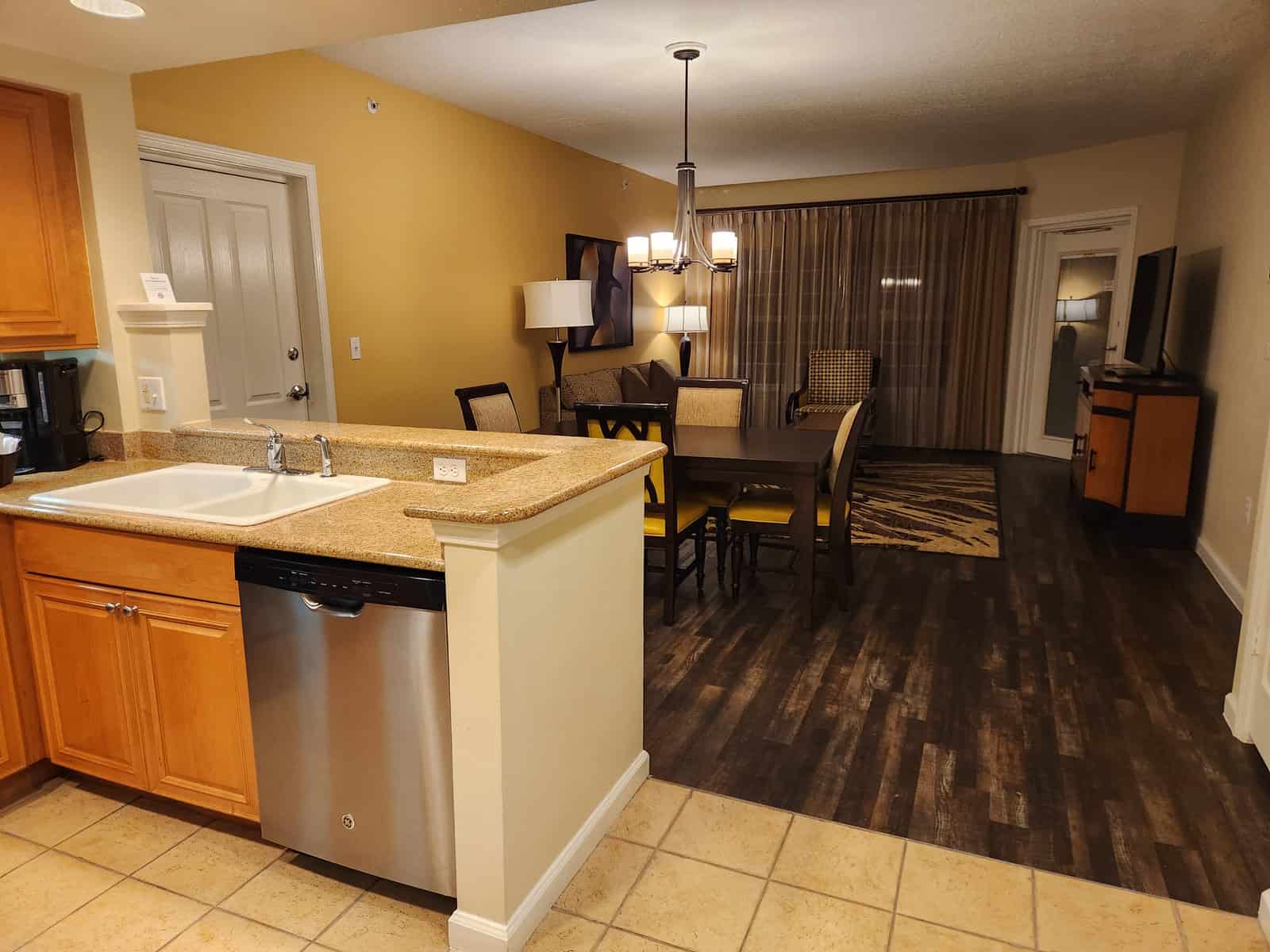 Notre chambre était très agréable. Pour être honnête, il est difficile de se tromper avec les clubs de vacances Hilton et Marriott à Orlando. Nous avons séjourné dans de nombreux centres de villégiature et ils sont tous très bien aménagés. Le style est celui d’un petit appartement, ce qui est idéal lorsque vous voyagez avec des enfants, comme c’était le cas pour nous.