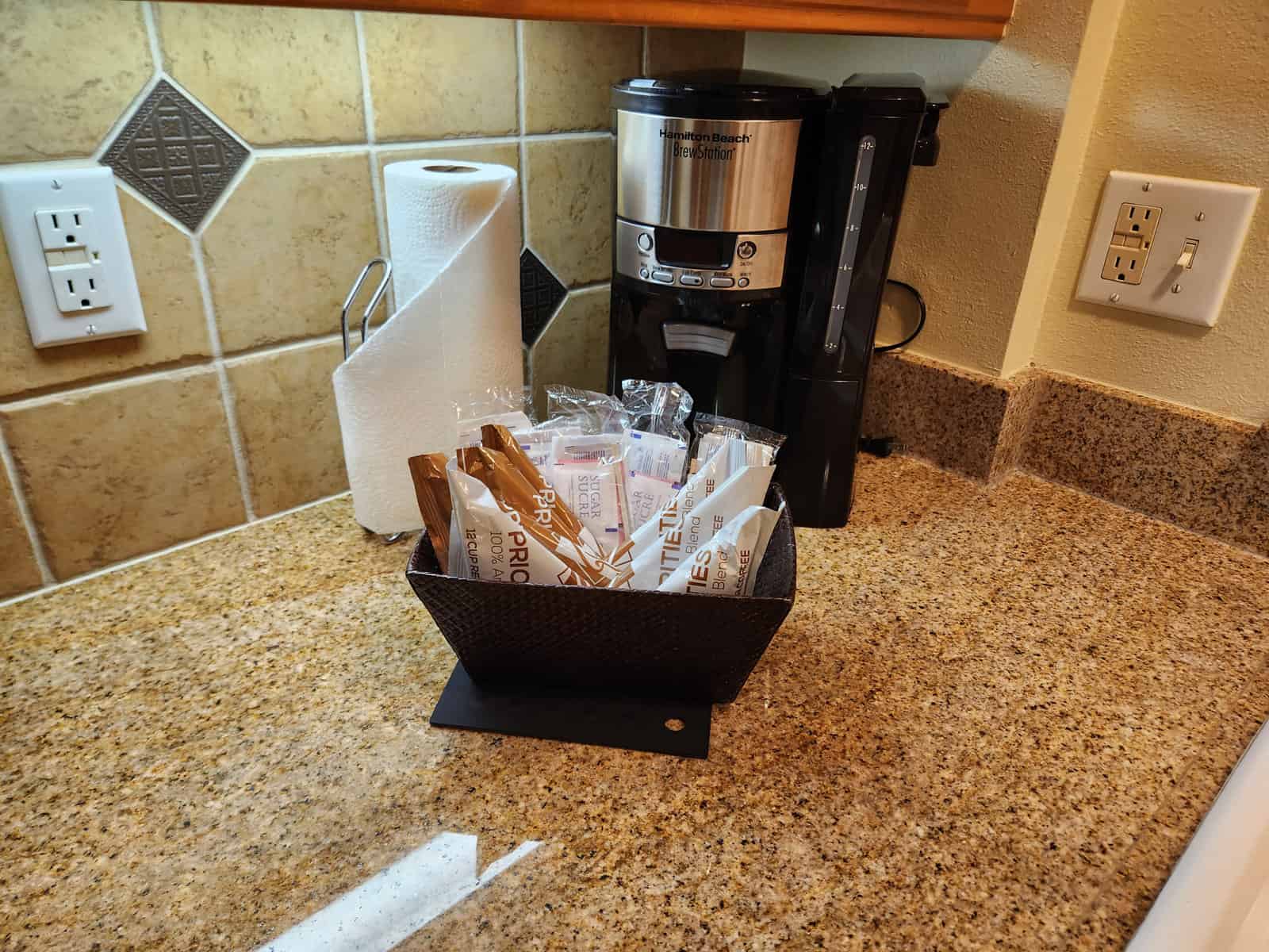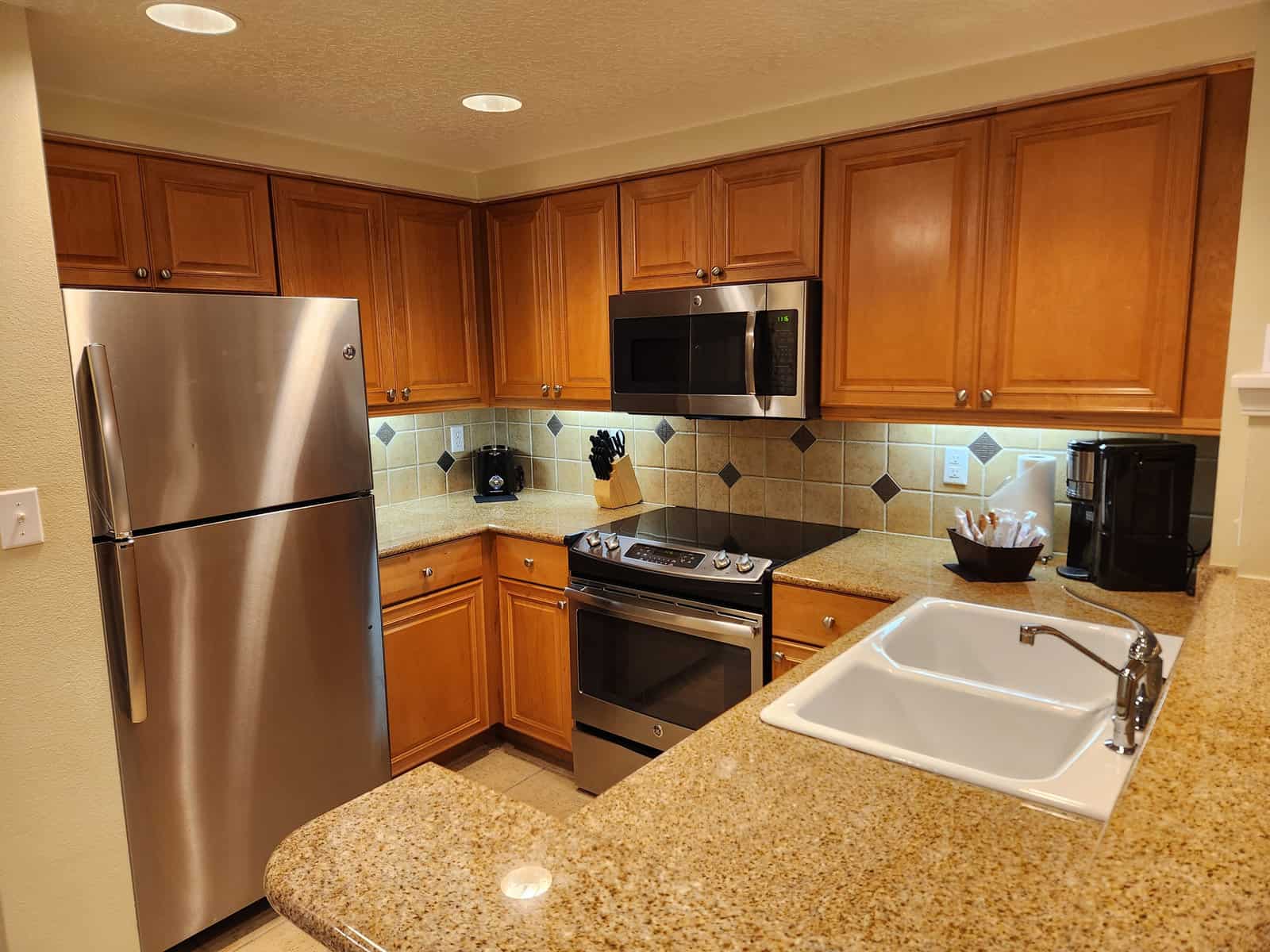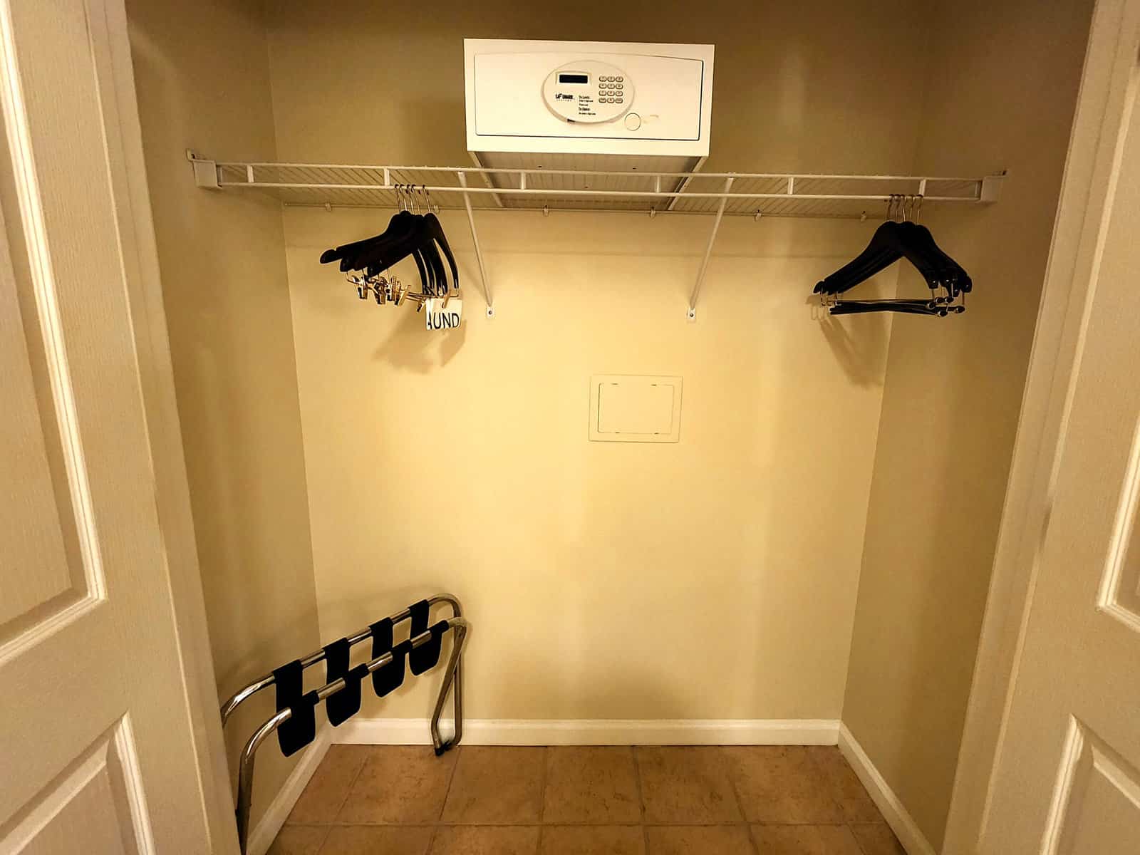 Notre chambre disposait d’une cuisine complète, d’un coin repas, d’un coin salon avec un canapé-lit double, d’une télévision à grand écran et d’un balcon avec une table et des chaises où nous pouvions manger à l’extérieur. J’ai trouvé que la quantité d’assiettes, d’ustensiles, de verres, etc. était moins importante que dans les établissements Marriott où nous avons séjourné. Cela signifiait simplement qu’il fallait laver la vaisselle plus souvent.